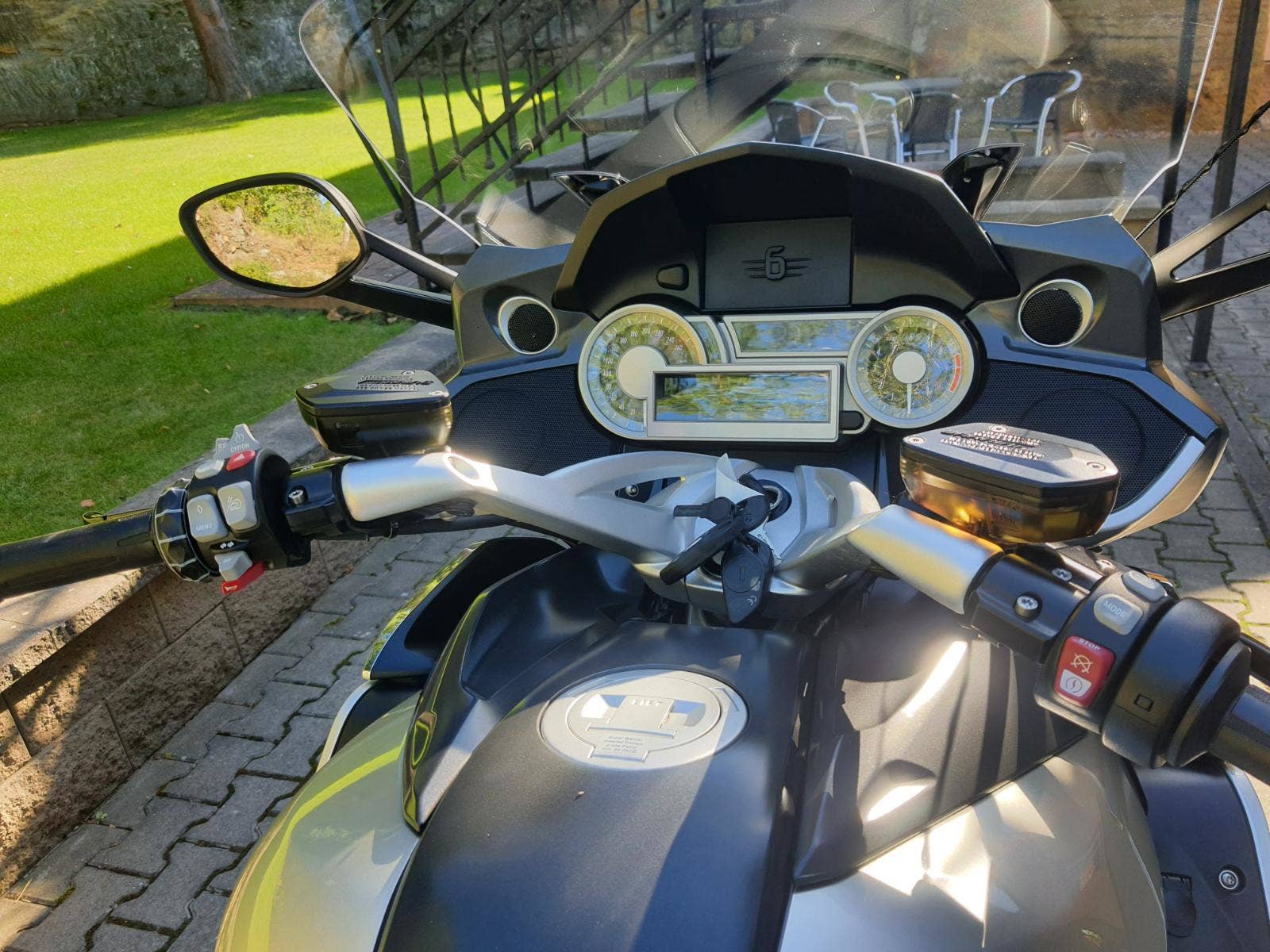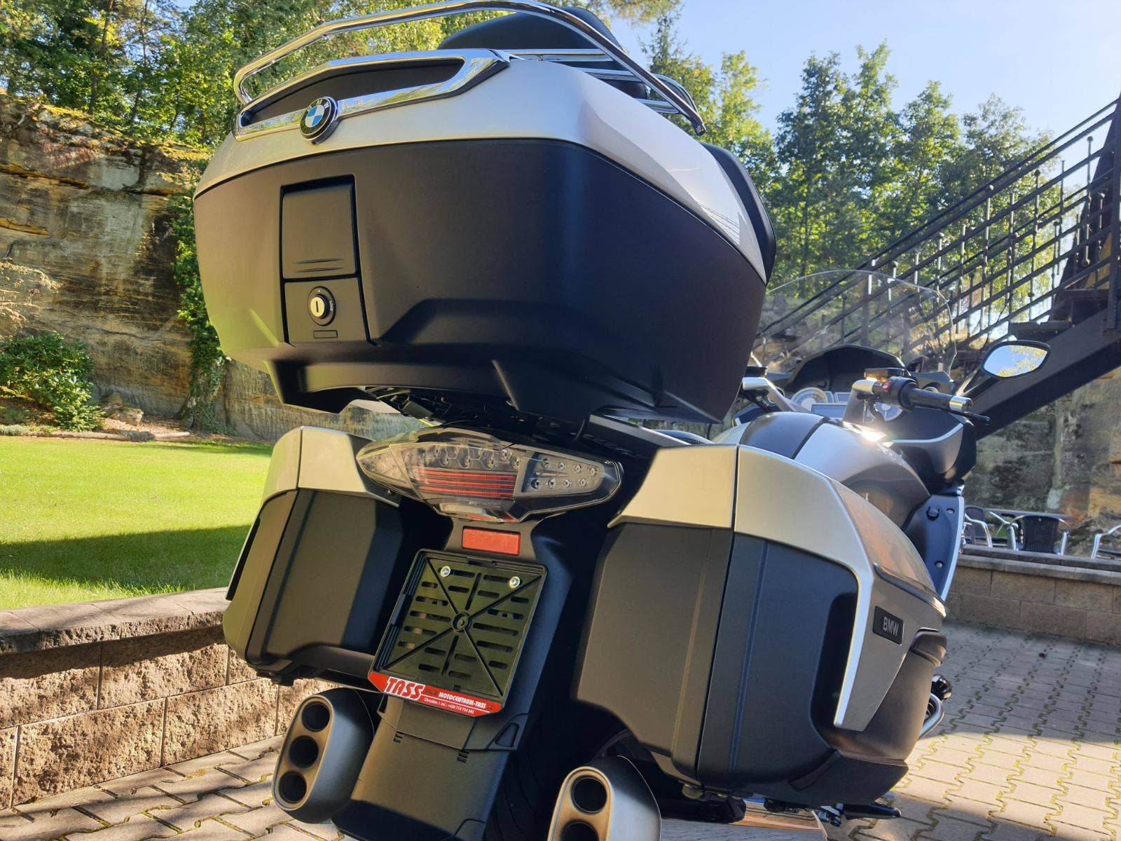 Motocykl v TOP stavu, nehavarovaný, dovezený z Německa od 1. majitele. Najeto pouze 32 000 KM! 2 x klíč, 3 x ovladač na centrální uzamykání, servisní knížka -plná servisní historie motocyklu, vše dělané v autorizovaném servisu BMW, manuál, certifikát COC. Stav pneu cca 70%. 3 x originál kufr BMW, vrchní kufr s opěrkou, + vrchní zahrádkou, padací rámy, hlavní stojan, přídavná světla, jednodílé vyhřívané komfortní sedadlo, pancéř. hadičky, podložka bočního stojanu WUNDERLICH, doplňková řadící a brzdová páka WUNDERLICH, 3 x textilní taška v kufrech, rádio, zásuvka 12V. Zánovní sada pneu.