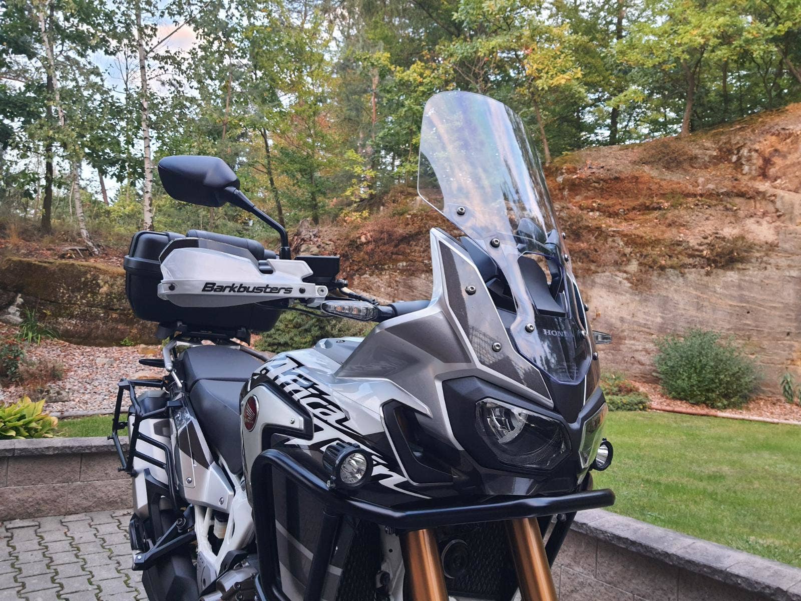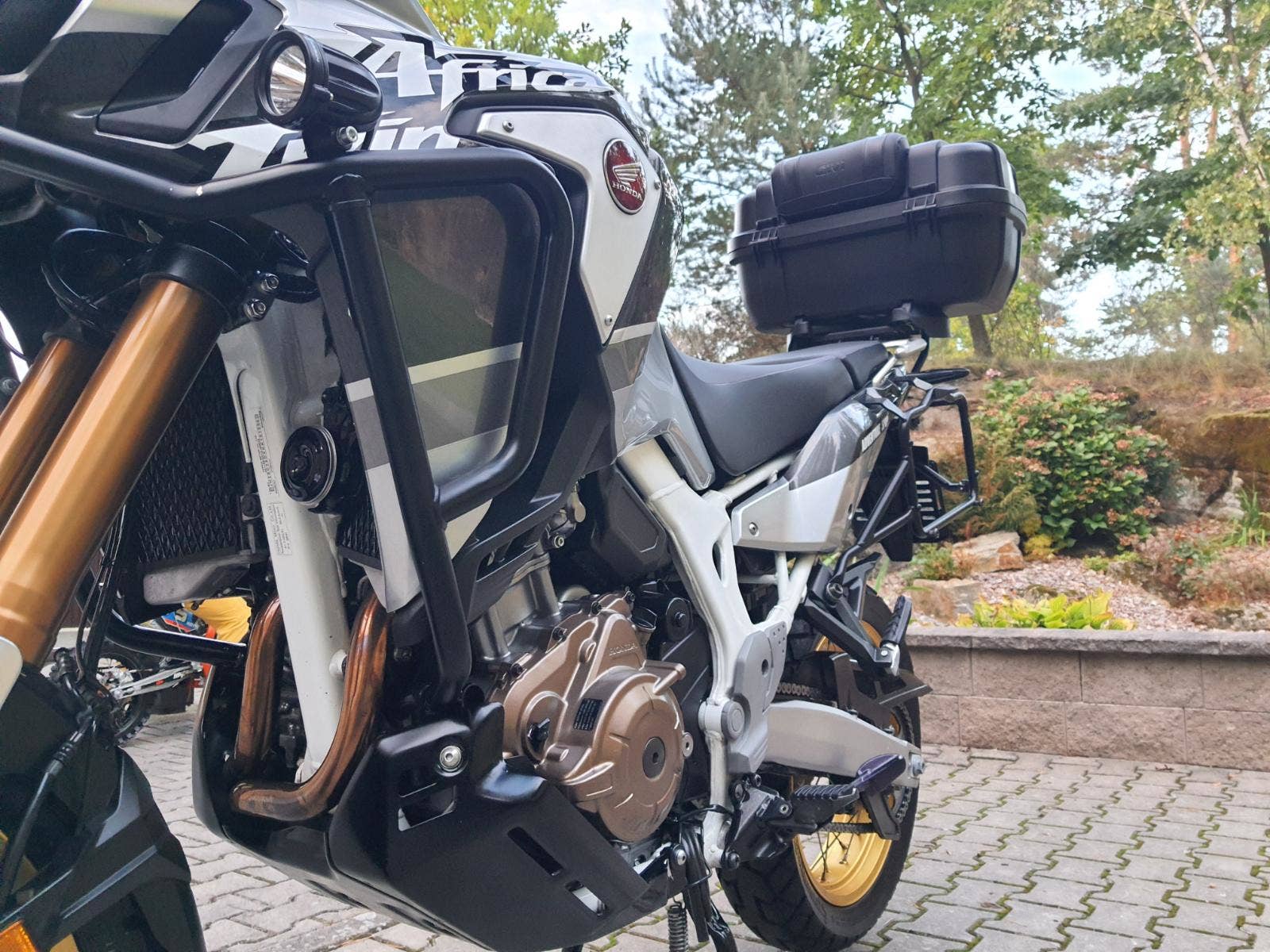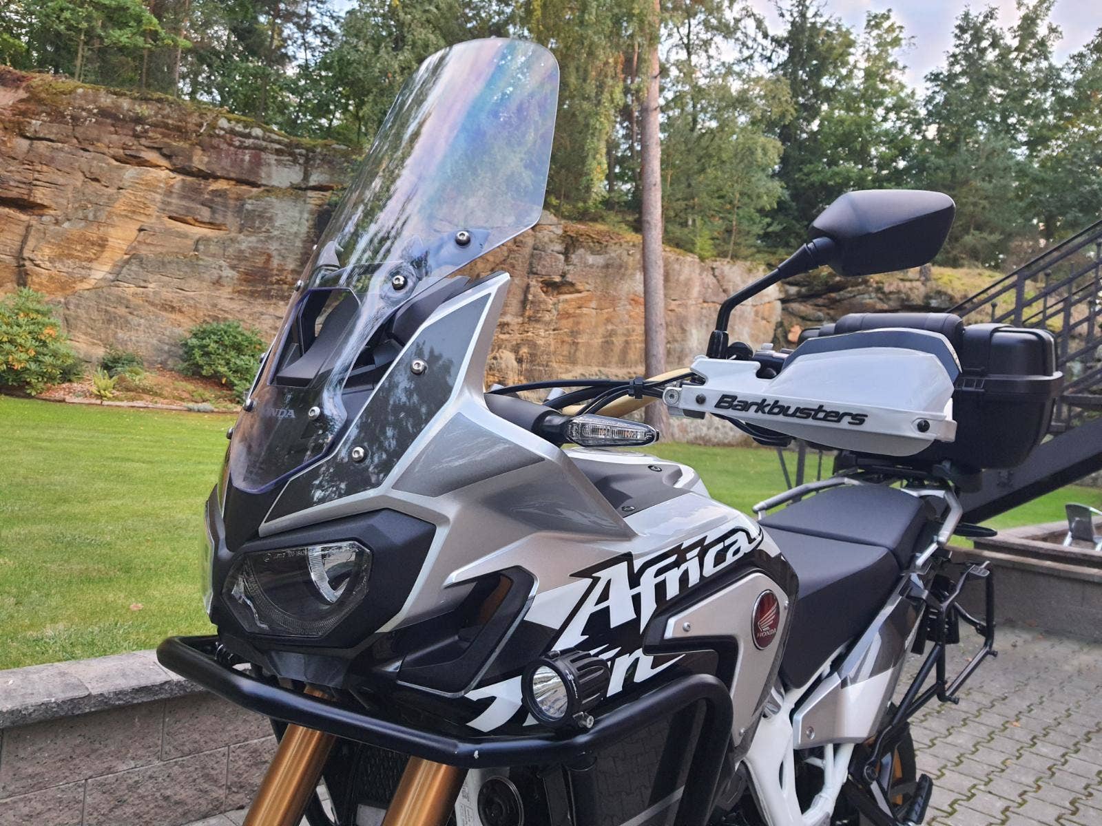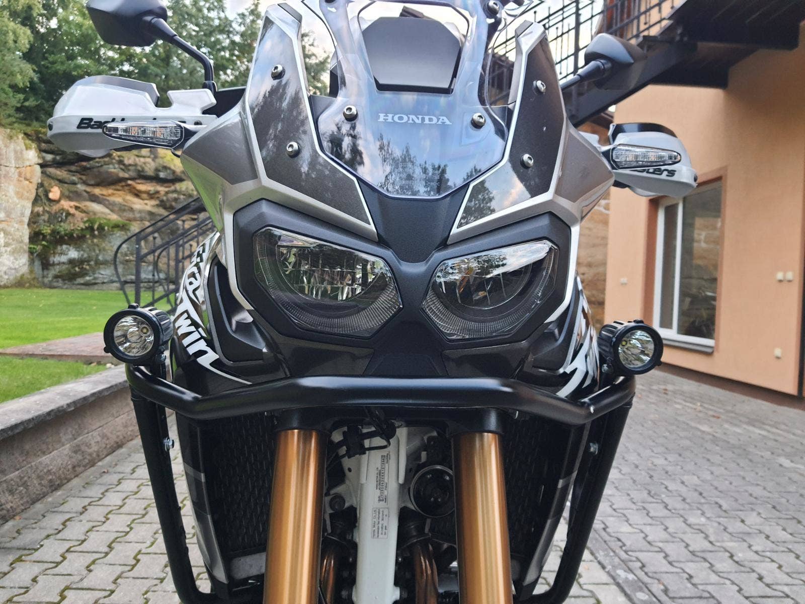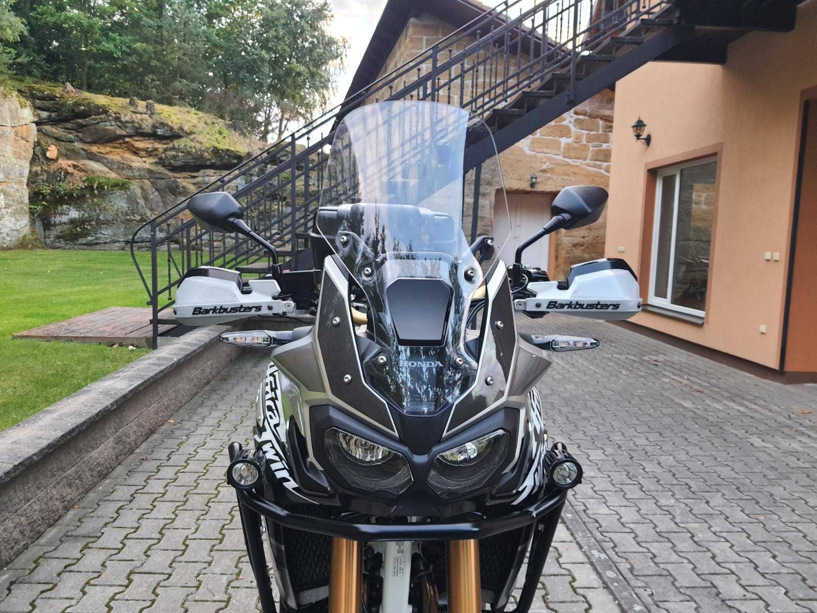 Motocykl v perfektním stavu a výbavě, dovezený ze zahraničí od autorizovaného prodejce. 2 x klíč, výpis servisní historie z HONDA servisu, manuál, zánovní sada pneu + řetězová sada. Výbava motocyklu: ABS, BC, TC, DCT, kryty rukojetí s AL. výztuhou BARKBUSTERS, padací rámy, led přídavná diodová světla, zásuvka 12V, hliníkový kryt pod motorem, set nosičů na 3 kufry od GIVI + vrchní kufr od GIVI s opěrkou, vyhřívané rukojeti. Možnost splátkového prodeje, již při složení 10% akontace vyřízení úvěru do 30 minut.
