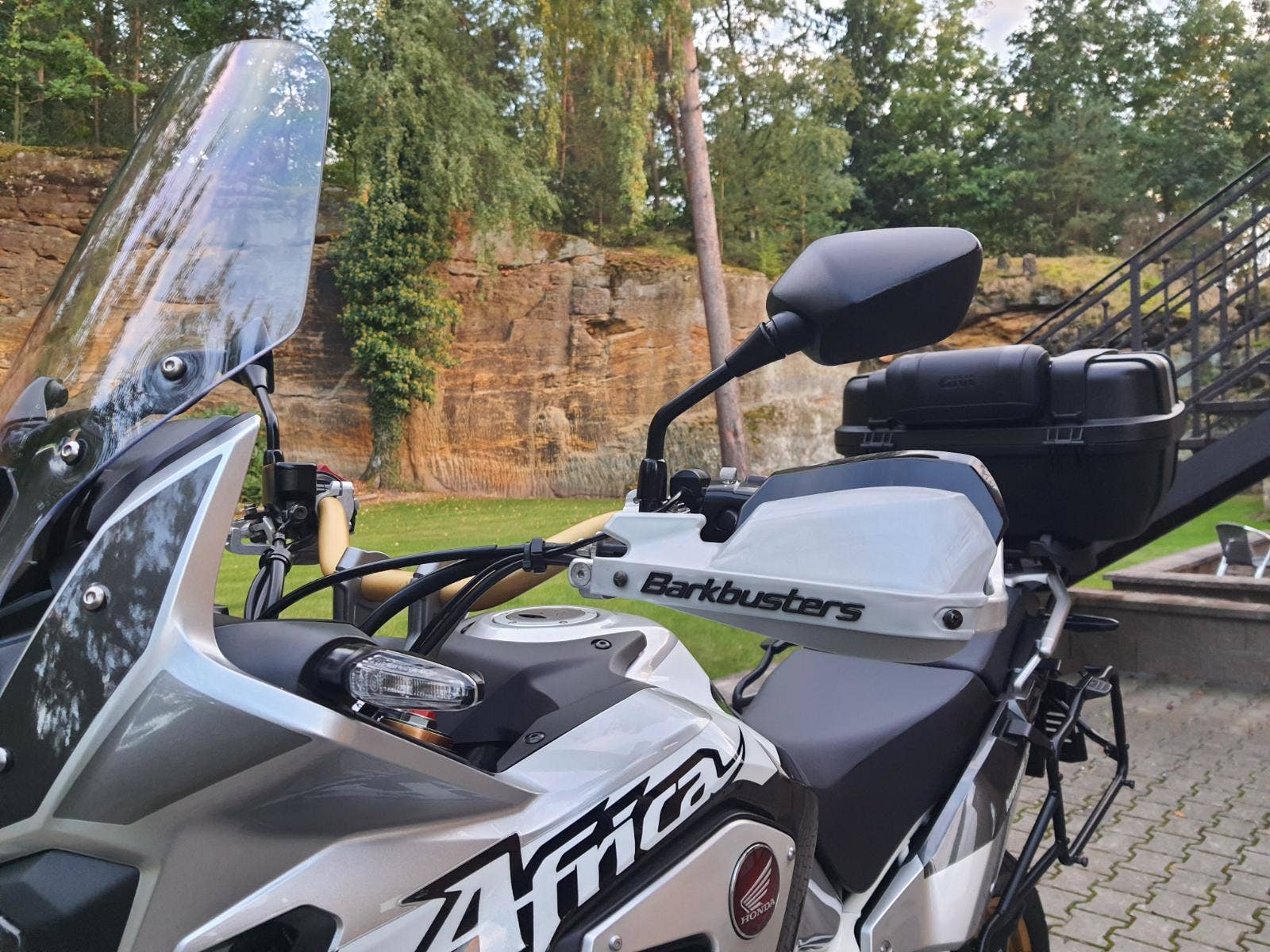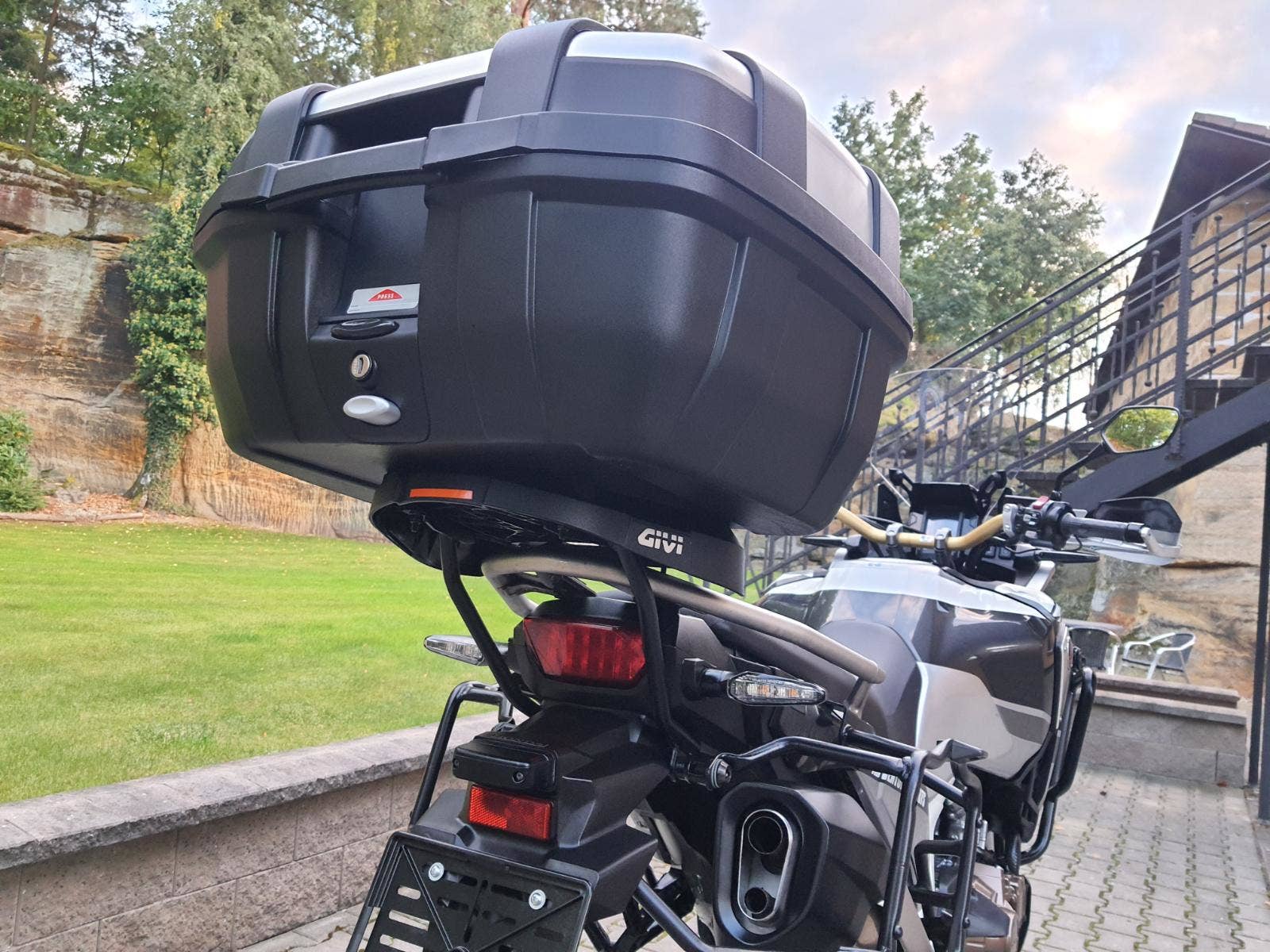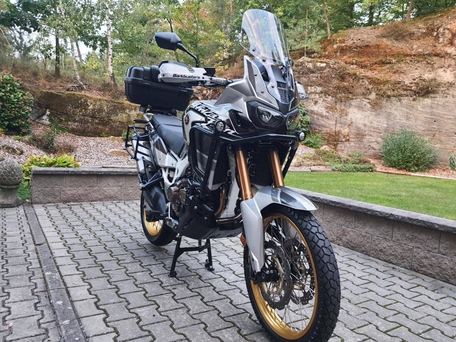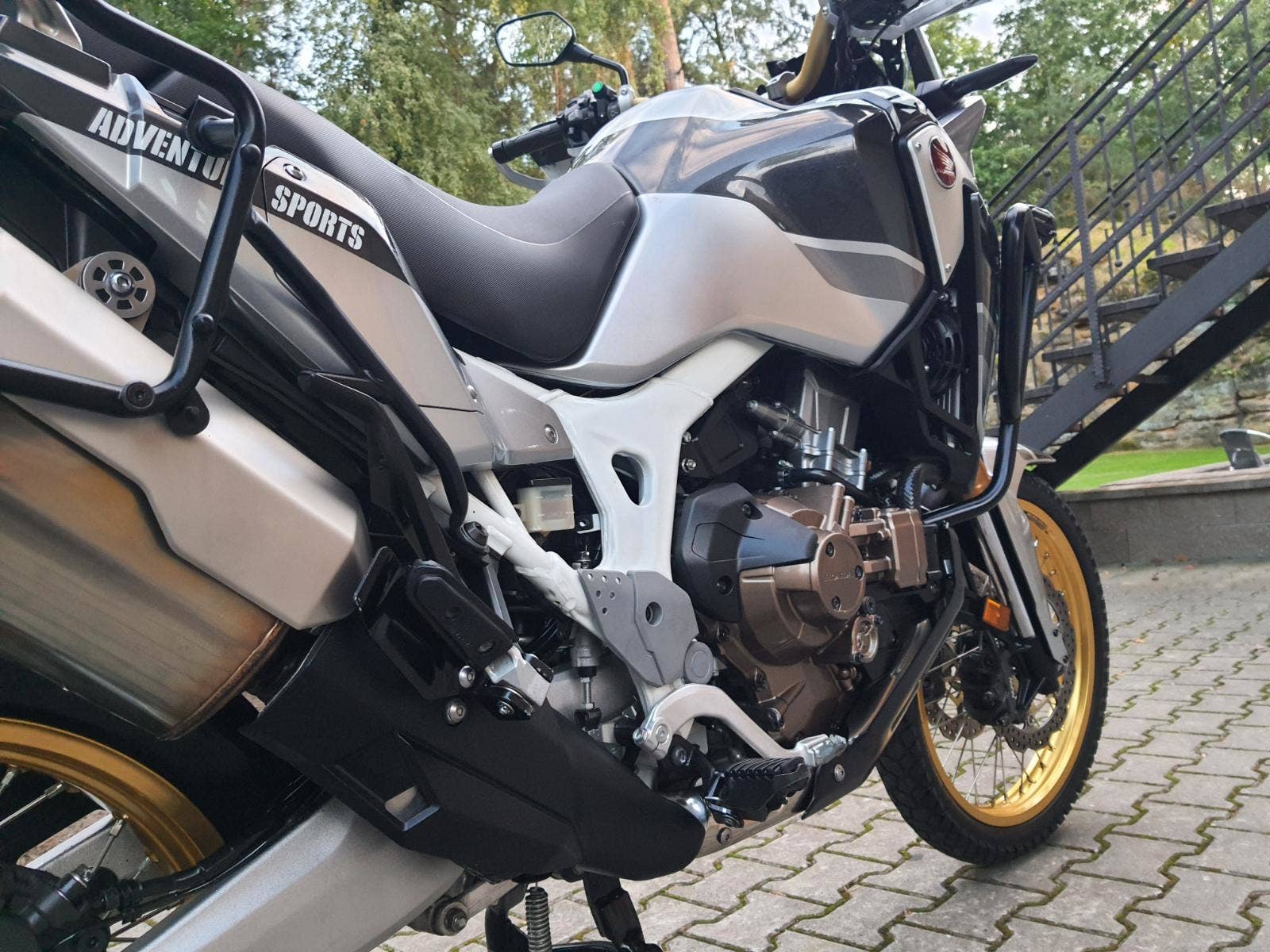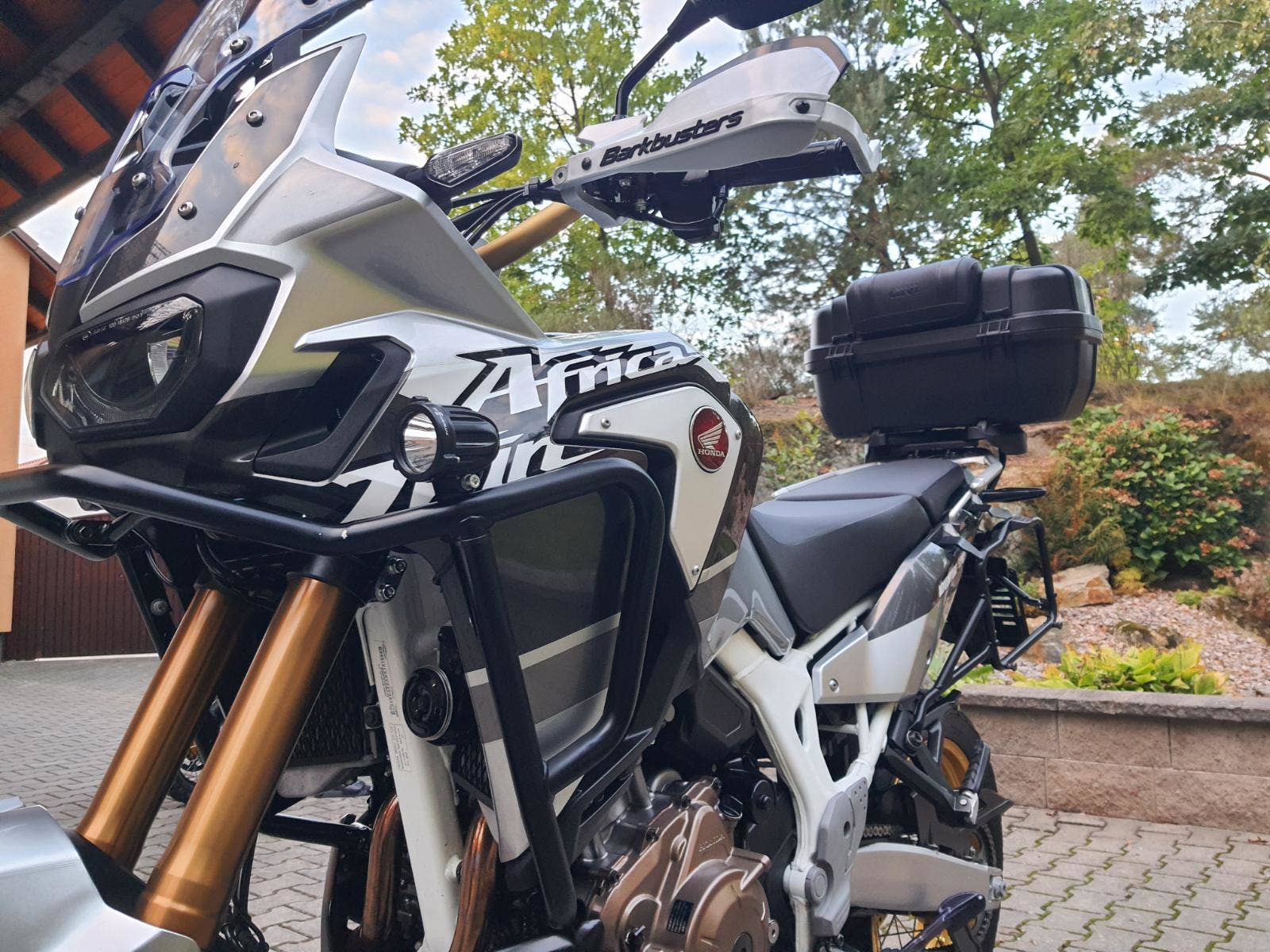 Motocykl v perfektním stavu a výbavě, dovezený ze zahraničí od autorizovaného prodejce. 2 x klíč, výpis servisní historie z HONDA servisu, manuál, zánovní sada pneu + řetězová sada. Výbava motocyklu: ABS, BC, TC, DCT, kryty rukojetí s AL. výztuhou BARKBUSTERS, padací rámy, led přídavná diodová světla, zásuvka 12V, hliníkový kryt pod motorem, set nosičů na 3 kufry od GIVI + vrchní kufr od GIVI s opěrkou, vyhřívané rukojeti. Možnost splátkového prodeje, již při složení 10% akontace vyřízení úvěru do 30 minut.