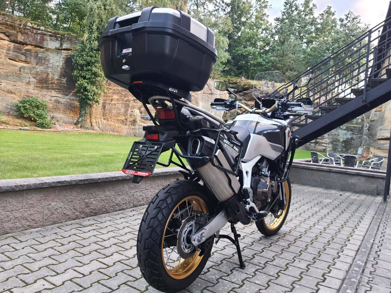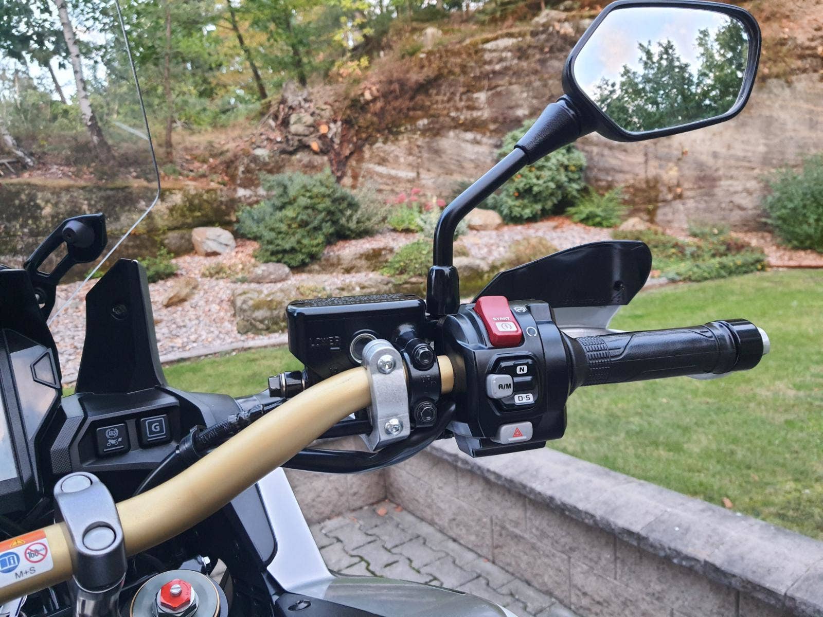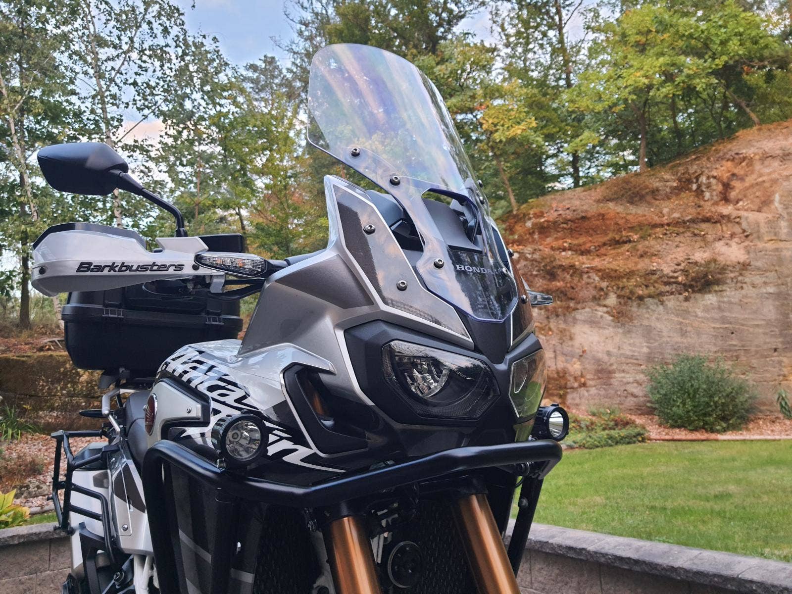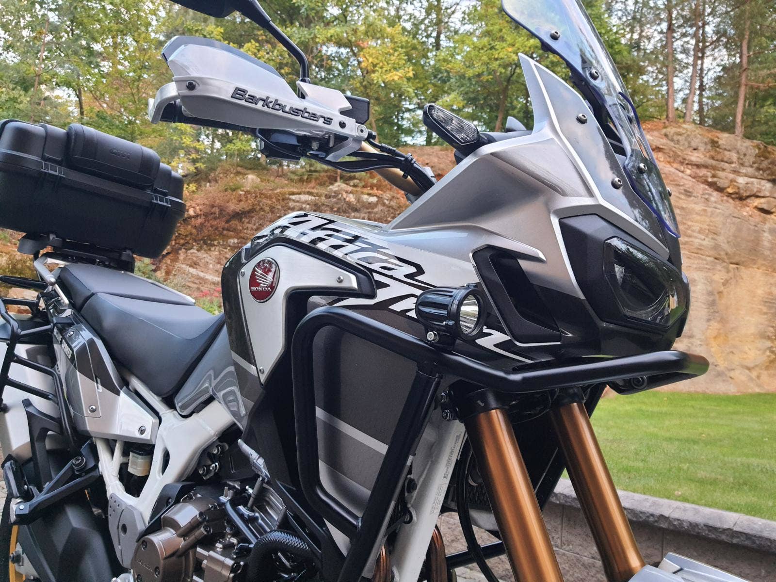 Motocykl v perfektním stavu a výbavě, dovezený ze zahraničí od autorizovaného prodejce. 2 x klíč, výpis servisní historie z HONDA servisu, manuál, zánovní sada pneu + řetězová sada. Výbava motocyklu: ABS, BC, TC, DCT, kryty rukojetí s AL. výztuhou BARKBUSTERS, padací rámy, led přídavná diodová světla, zásuvka 12V, hliníkový kryt pod motorem, set nosičů na 3 kufry od GIVI + vrchní kufr od GIVI s opěrkou, vyhřívané rukojeti. Možnost splátkového prodeje, již při složení 10% akontace vyřízení úvěru do 30 minut.