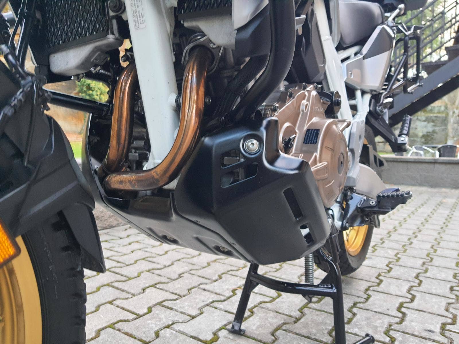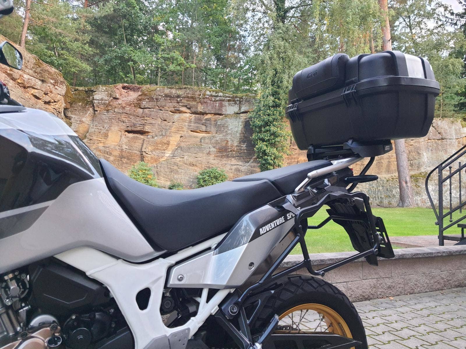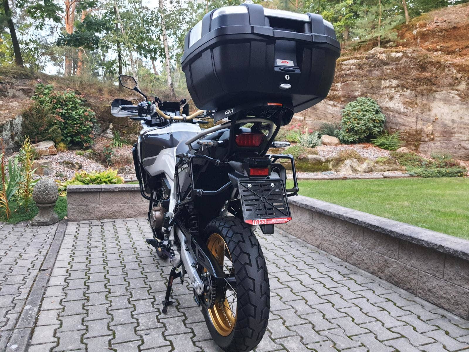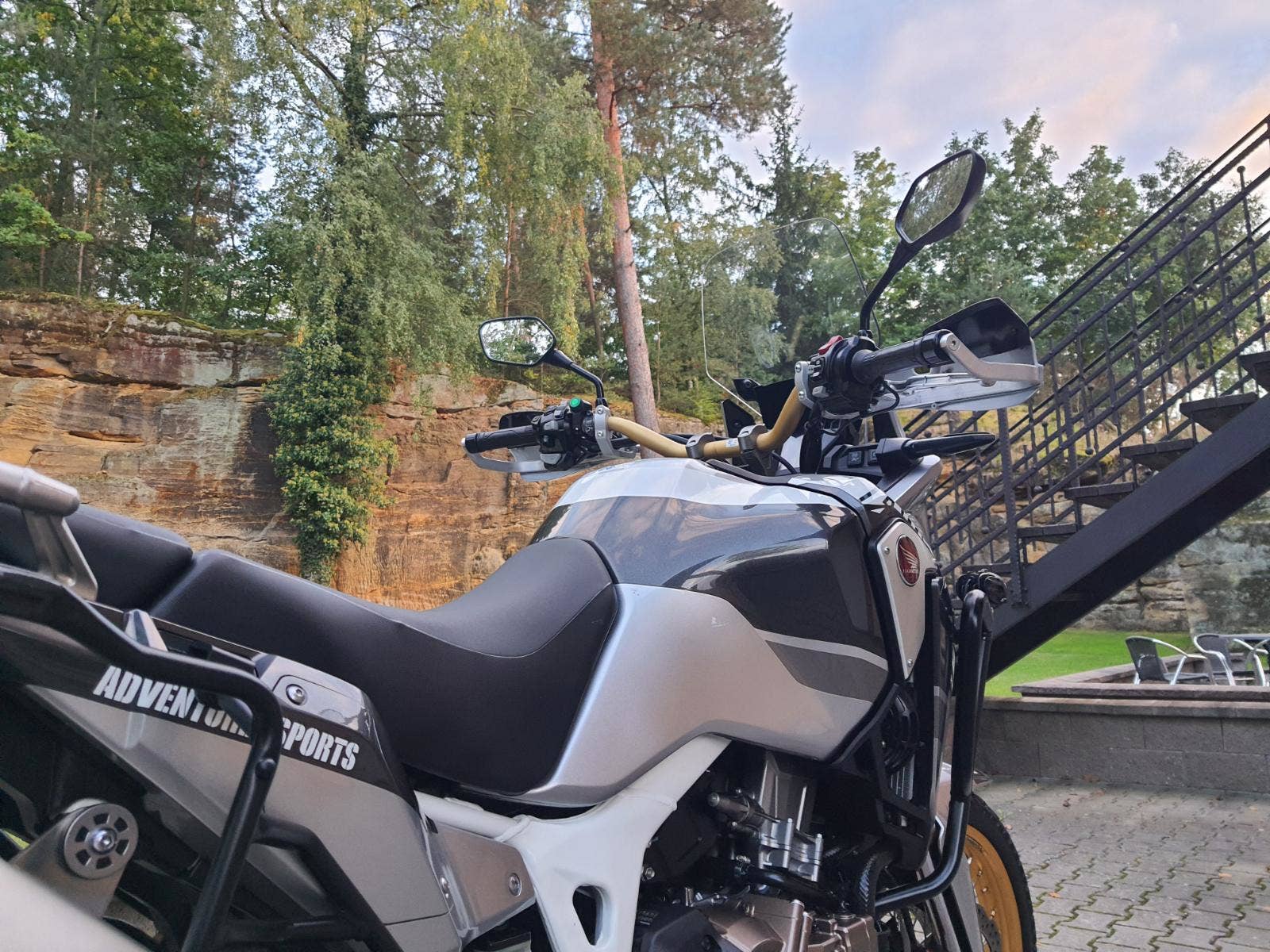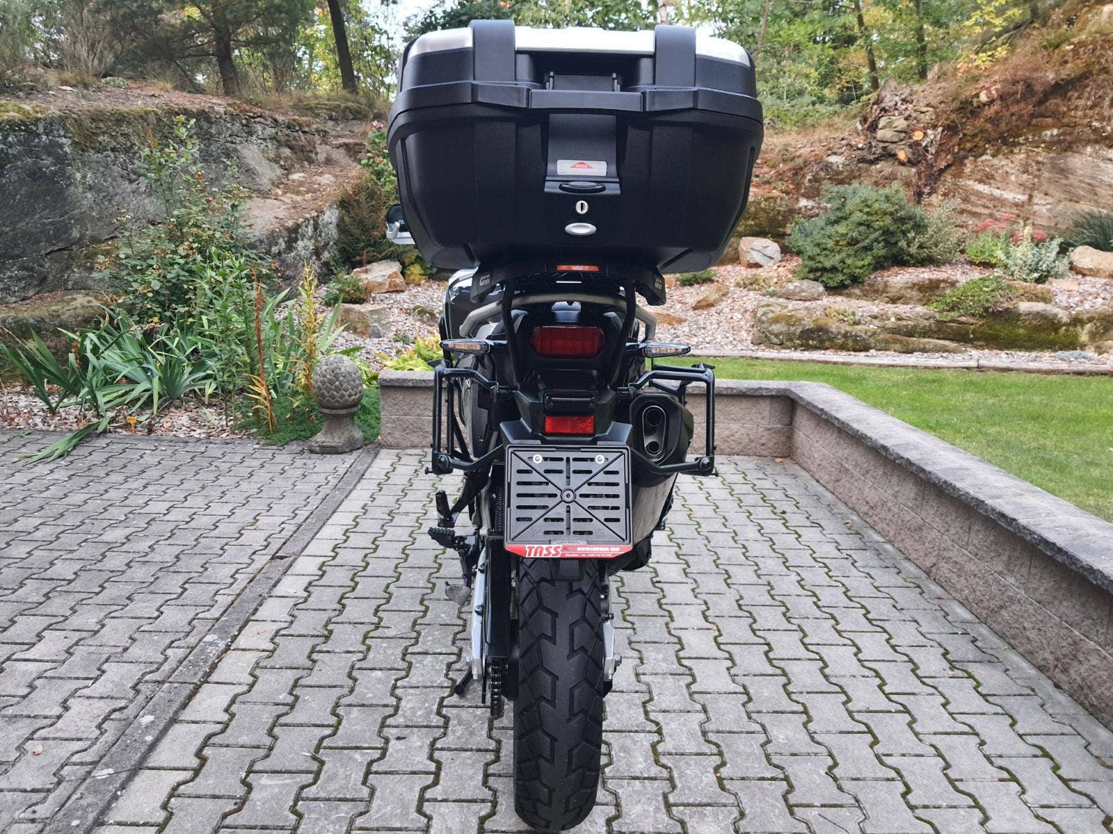 Motocykl v perfektním stavu a výbavě, dovezený ze zahraničí od autorizovaného prodejce. 2 x klíč, výpis servisní historie z HONDA servisu, manuál, zánovní sada pneu + řetězová sada. Výbava motocyklu: ABS, BC, TC, DCT, kryty rukojetí s AL. výztuhou BARKBUSTERS, padací rámy, led přídavná diodová světla, zásuvka 12V, hliníkový kryt pod motorem, set nosičů na 3 kufry od GIVI + vrchní kufr od GIVI s opěrkou, vyhřívané rukojeti. Možnost splátkového prodeje, již při složení 10% akontace vyřízení úvěru do 30 minut.