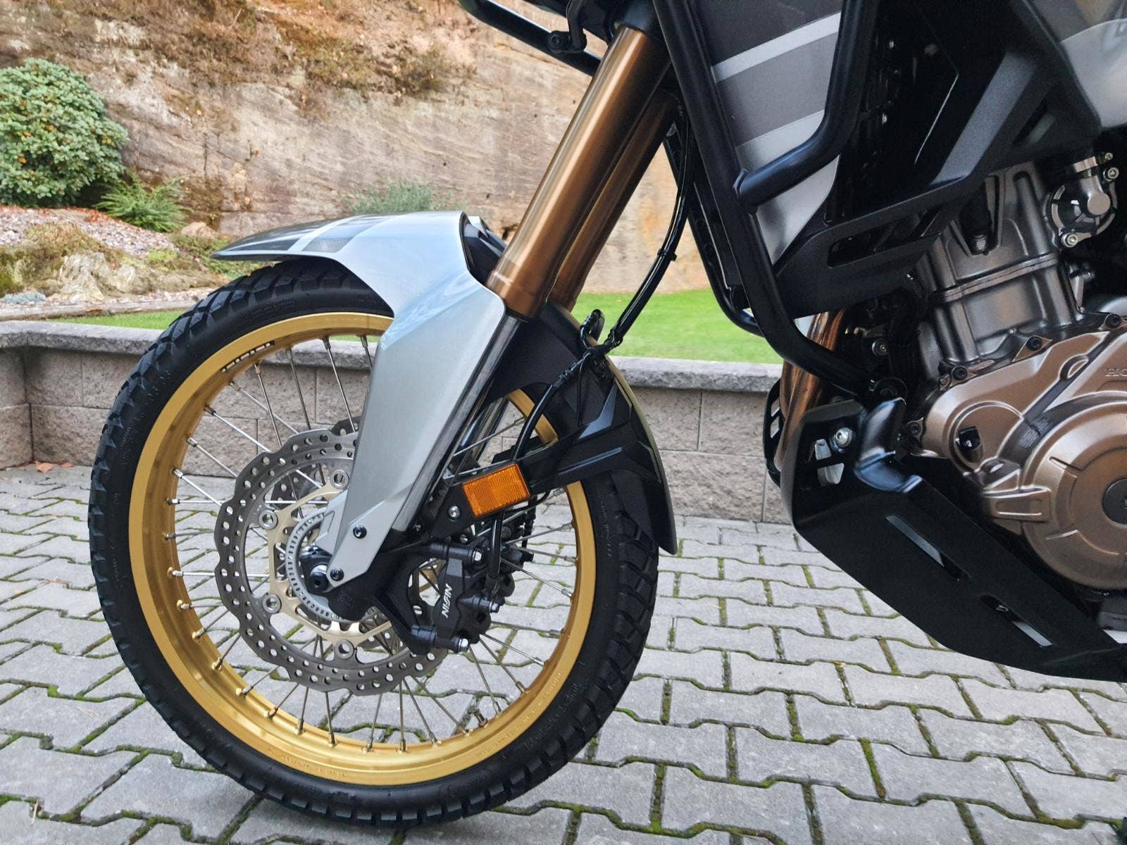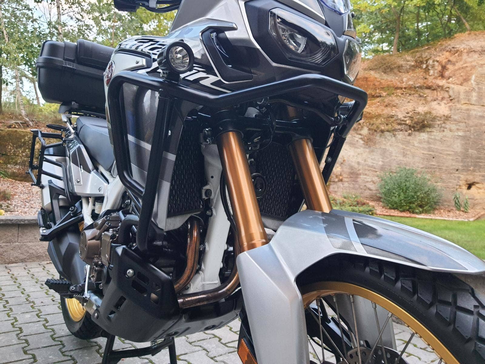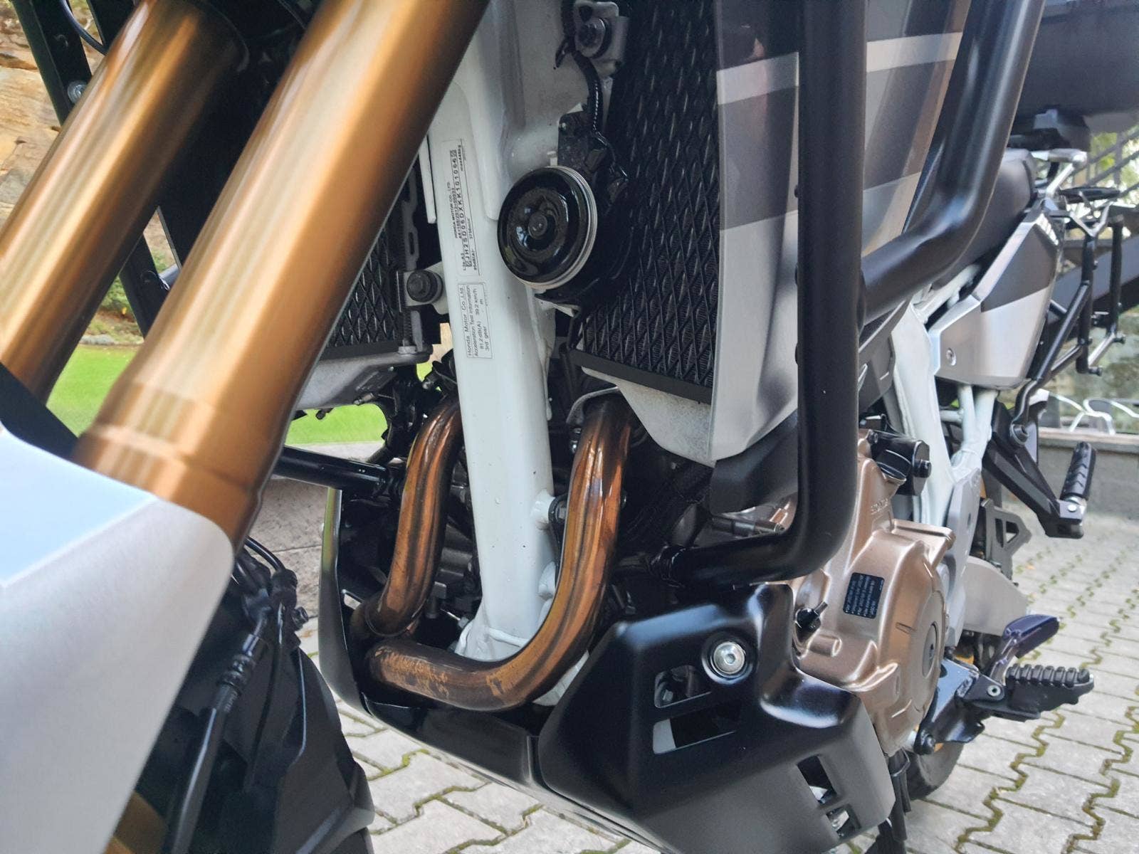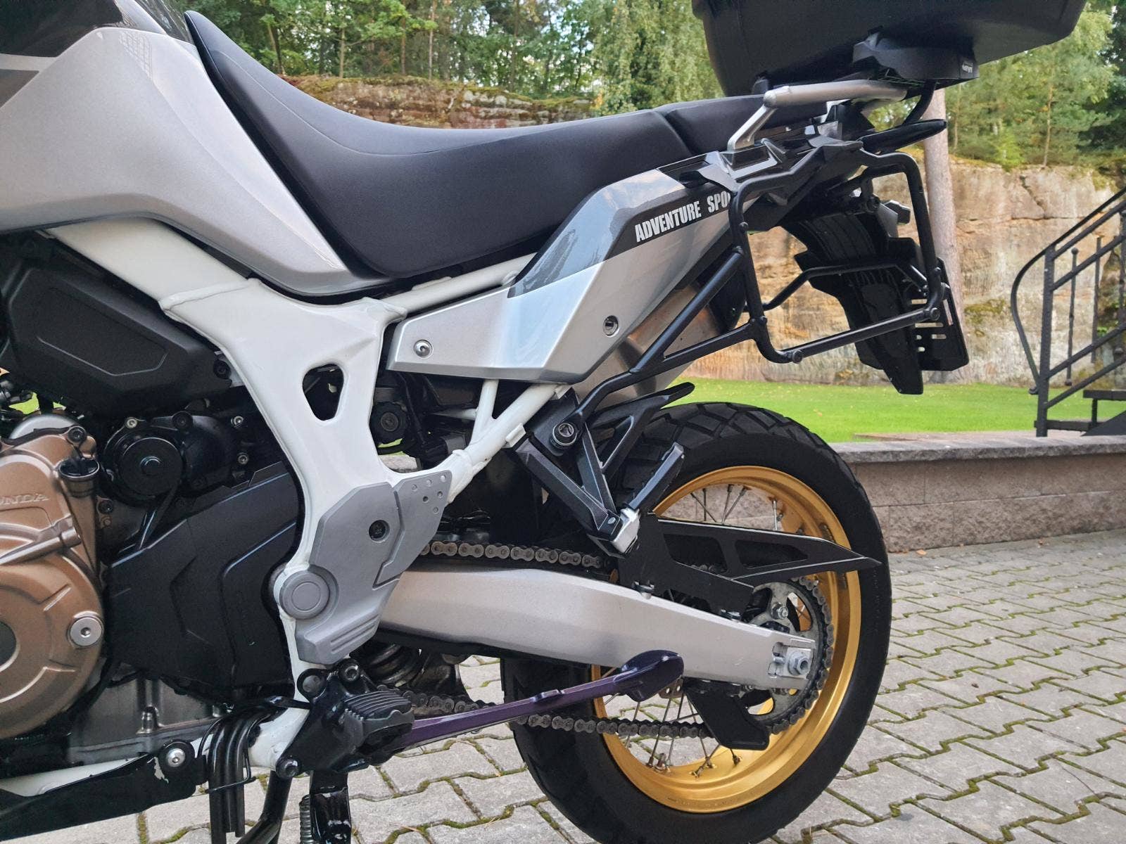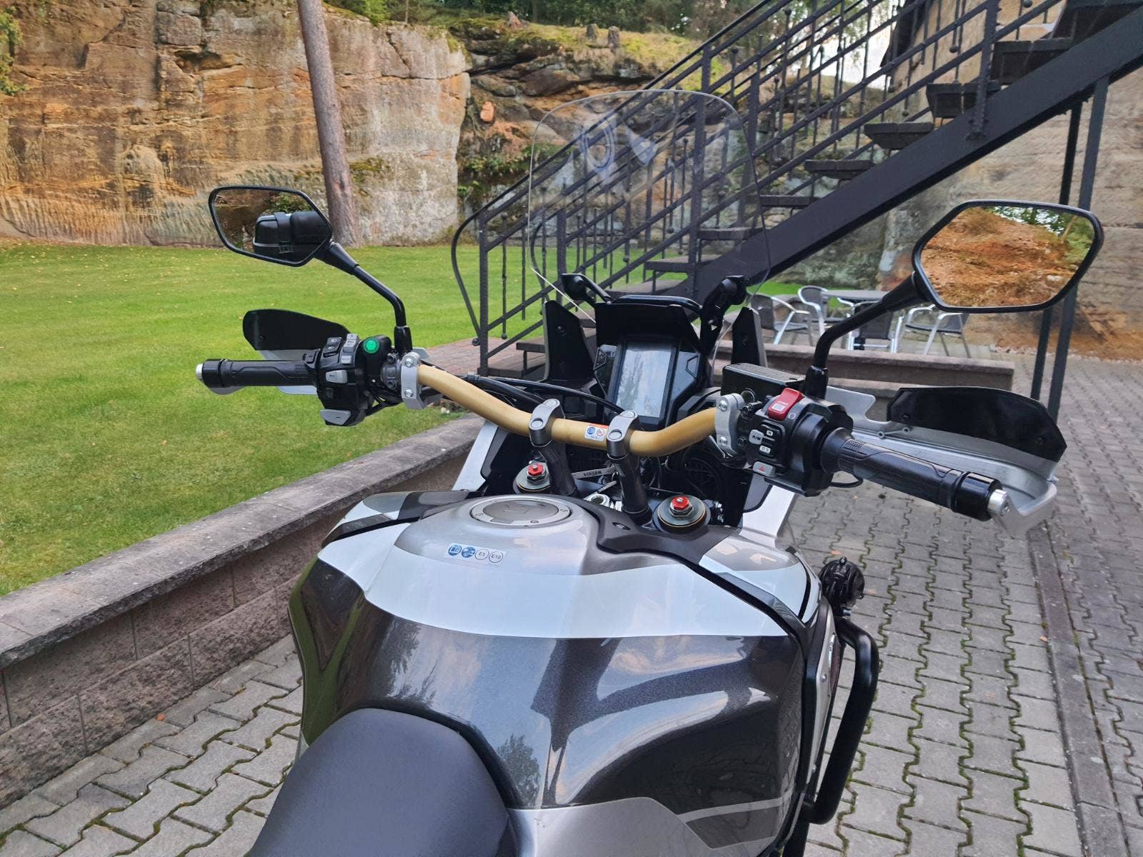 Motocykl v perfektním stavu a výbavě, dovezený ze zahraničí od autorizovaného prodejce. 2 x klíč, výpis servisní historie z HONDA servisu, manuál, zánovní sada pneu + řetězová sada. Výbava motocyklu: ABS, BC, TC, DCT, kryty rukojetí s AL. výztuhou BARKBUSTERS, padací rámy, led přídavná diodová světla, zásuvka 12V, hliníkový kryt pod motorem, set nosičů na 3 kufry od GIVI + vrchní kufr od GIVI s opěrkou, vyhřívané rukojeti. Možnost splátkového prodeje, již při složení 10% akontace vyřízení úvěru do 30 minut.