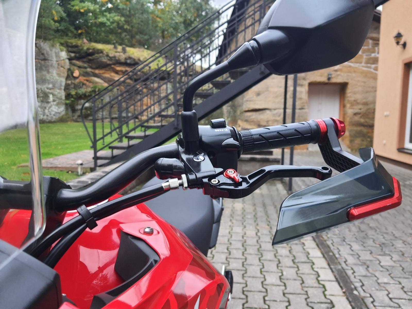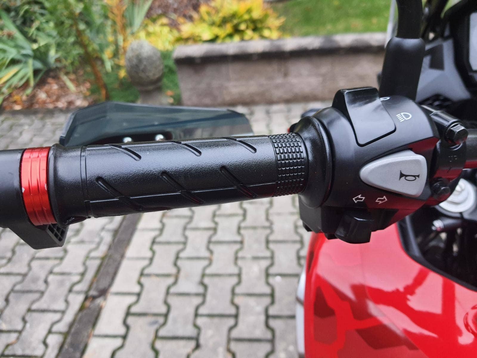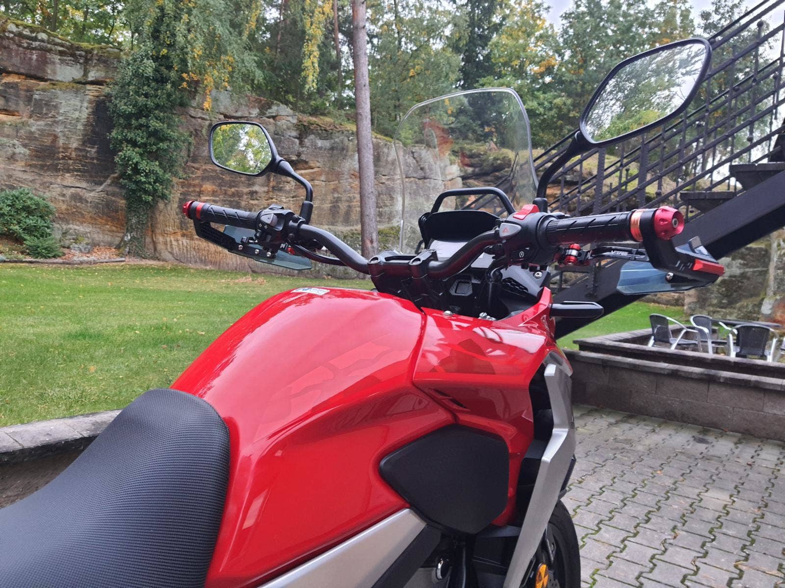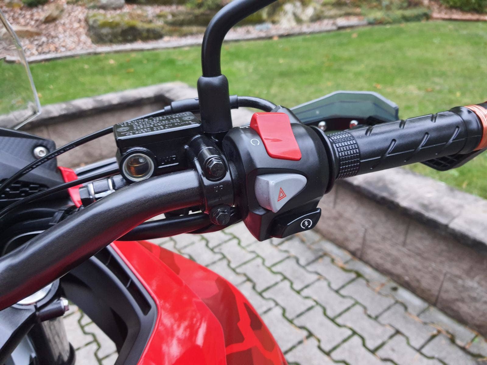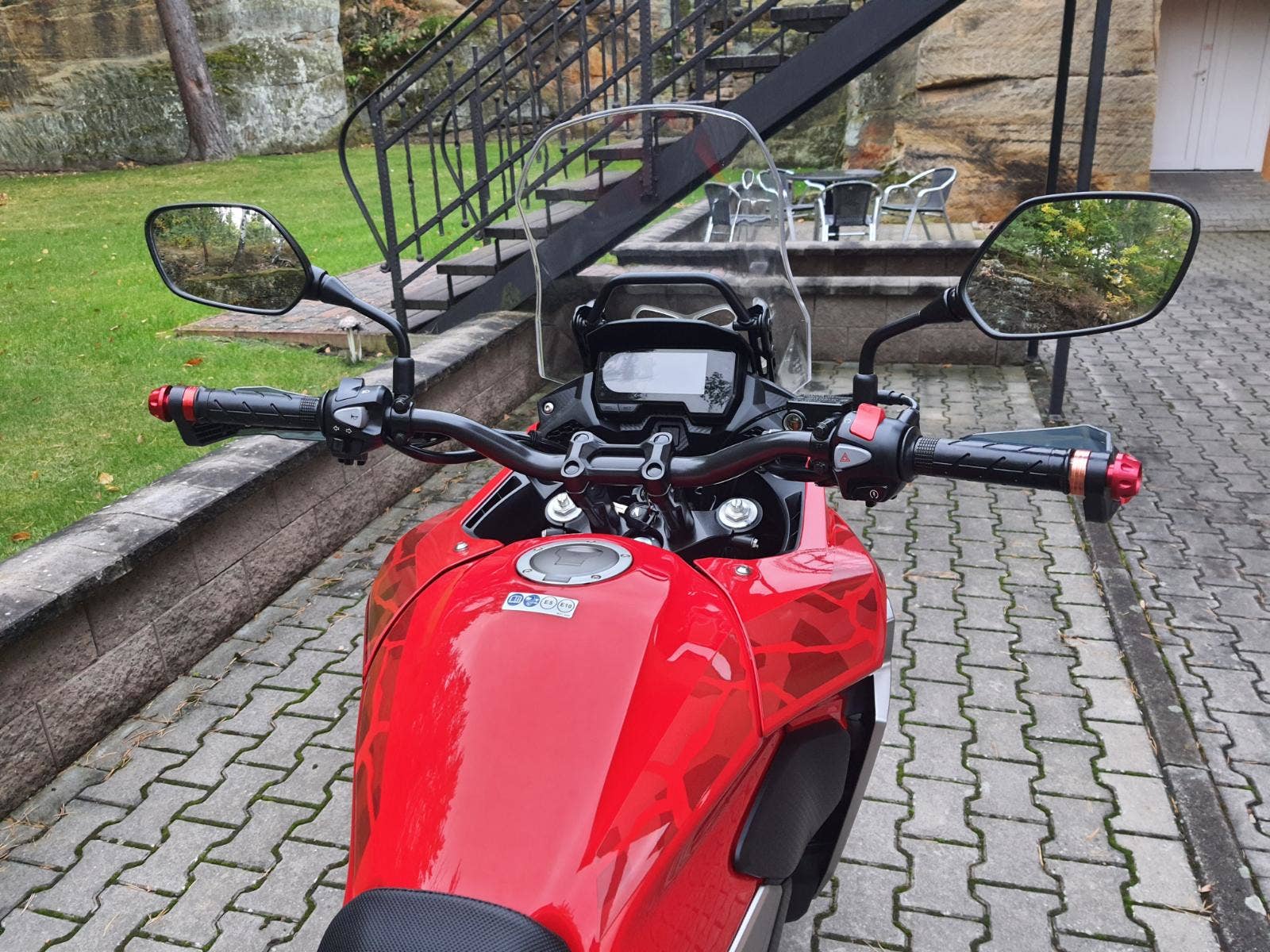 Motocykl v perfektním stavu, dovezený z Německa od 2. majitele. 2 x klíč, servisní knížka, manuál, certifikát COC, protokol TUV - Německé STK - doložení KM. Pneu a řetězová sada OK. Výbava motocyklu: ABS, BC, hlavní stojan, nosič na vrchní kufr od GIVI, kryty rukojetí CNC stavitelné eloxované počky V-TREC, kryty rukojetí eloxovaná závažíčka. Možnost splátkového prodeje, již při složení 10% akontace vyřízení úvěru do 30 minut!