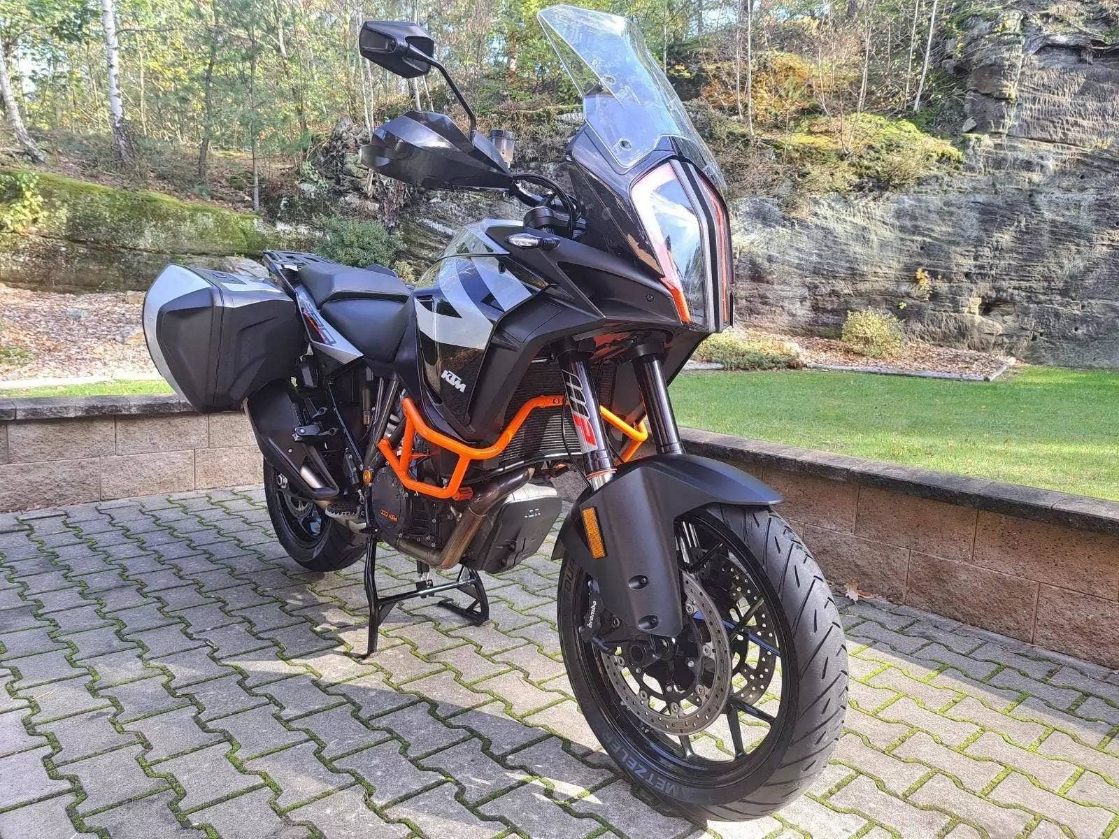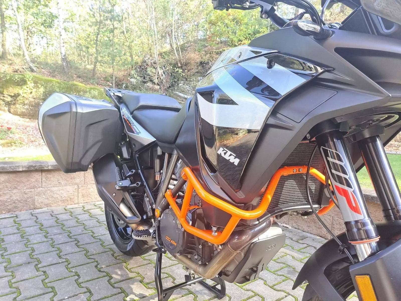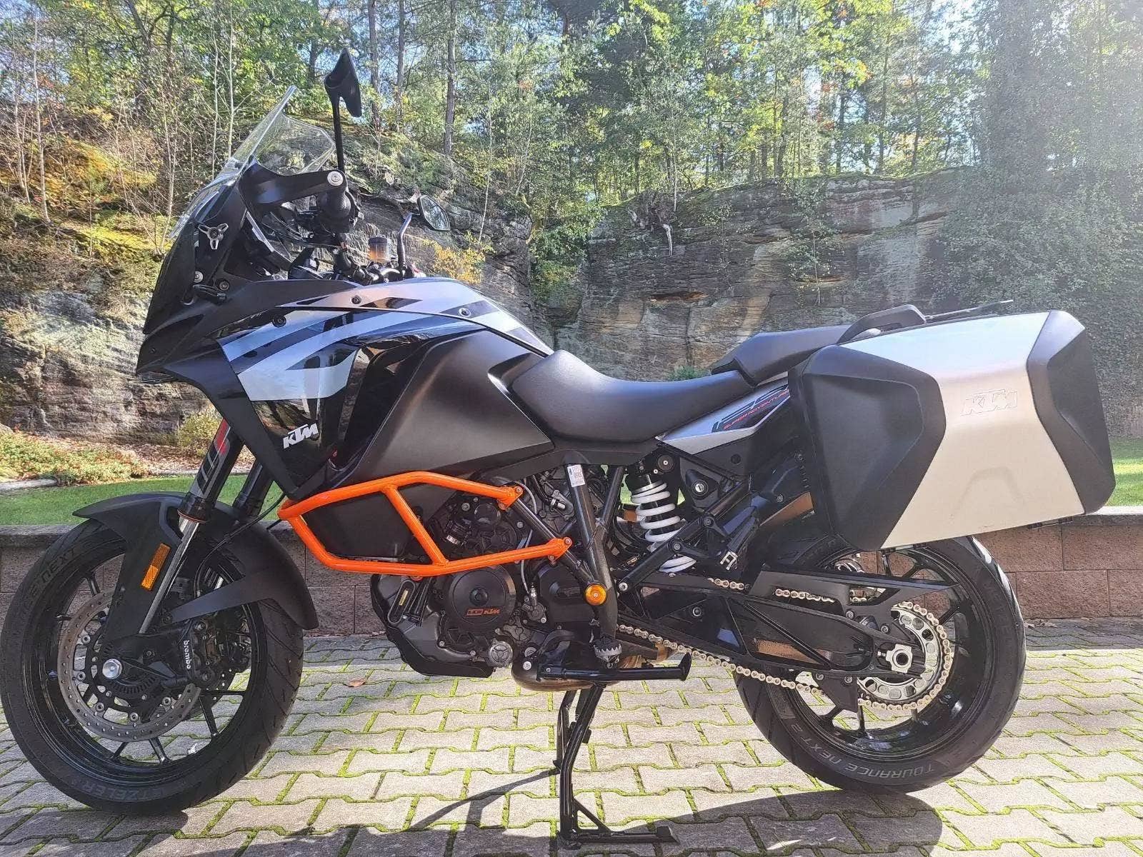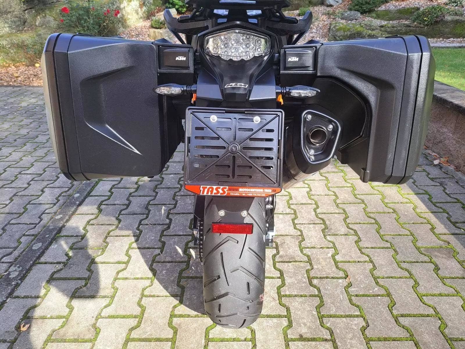 Motocykl v TOP stavu a výbavě, nehavarovaný, dovezený z Německa od 1. majitele. Nyní TP CZ 1. majitel. 2 x klíč, KEY CODE CARD, výpis servisní historie KTM, manuál, Pneu a řetězová sada OK. Výbava motocyklu: ABS, BC, TC, volitelné jízdní režimy, tempomat MTC + MSR, HHC, QUICKSHIFTER +, vyhřívané rukojeti, elektronicky stavitelný podvozek motocyklu, padací rámy, boční kufry KTM, hlavní stojan, pancéř. hadičky, diodové blikny, eloxované víčka rámu KTM POWER PARTS, kryty rukojetí. Možnost splátkového prodeje, již při složení 10% akontace vyřízení úvěru do 30 minut!