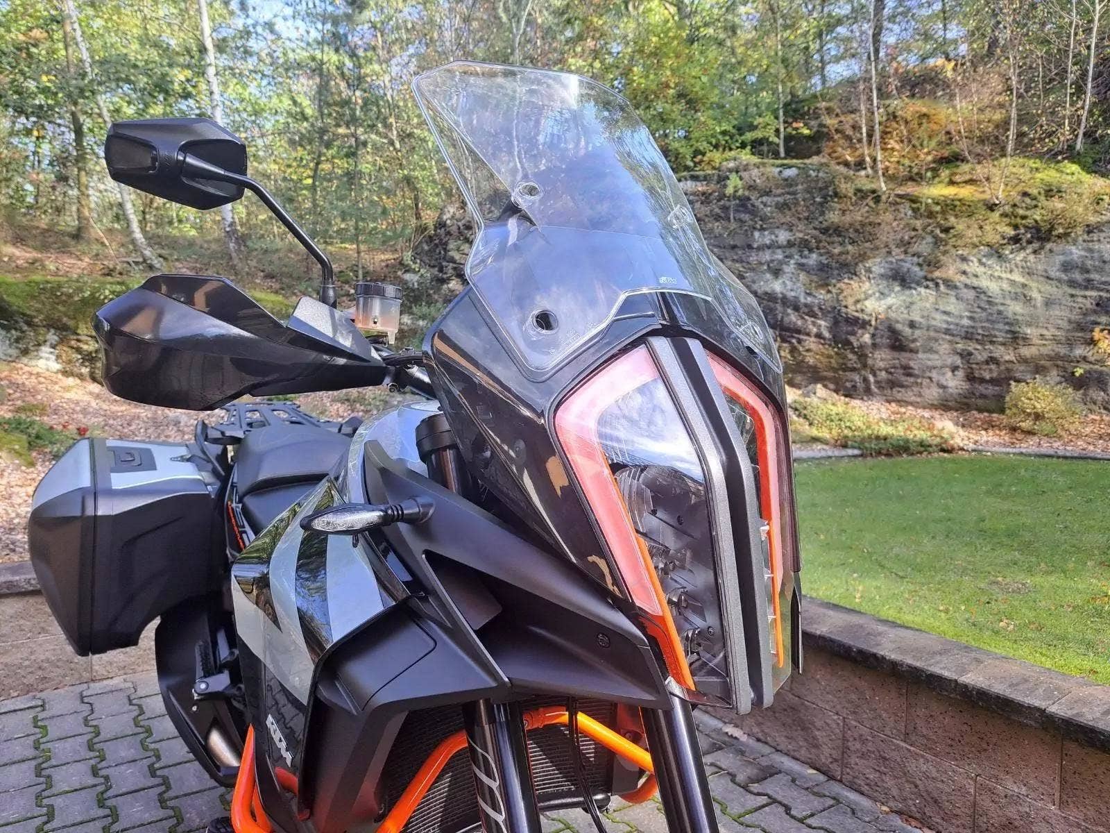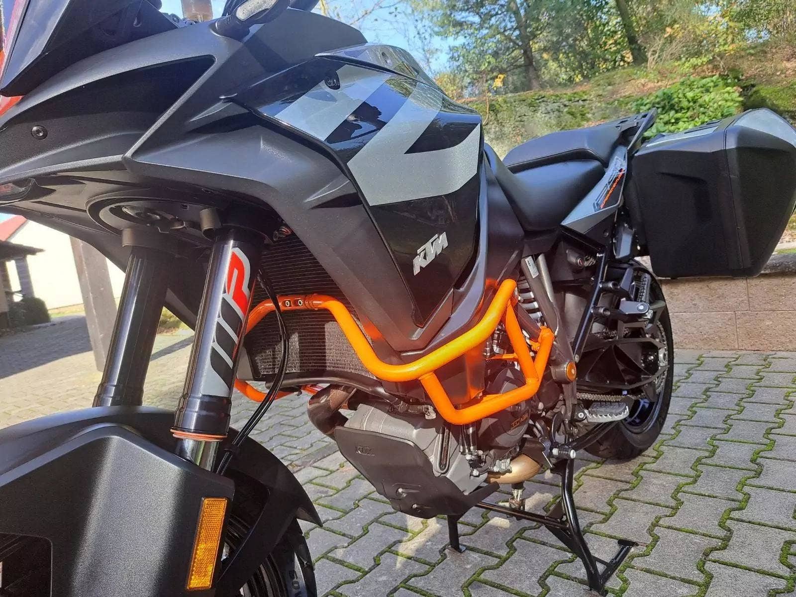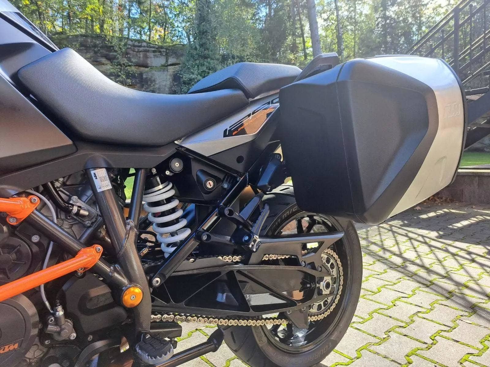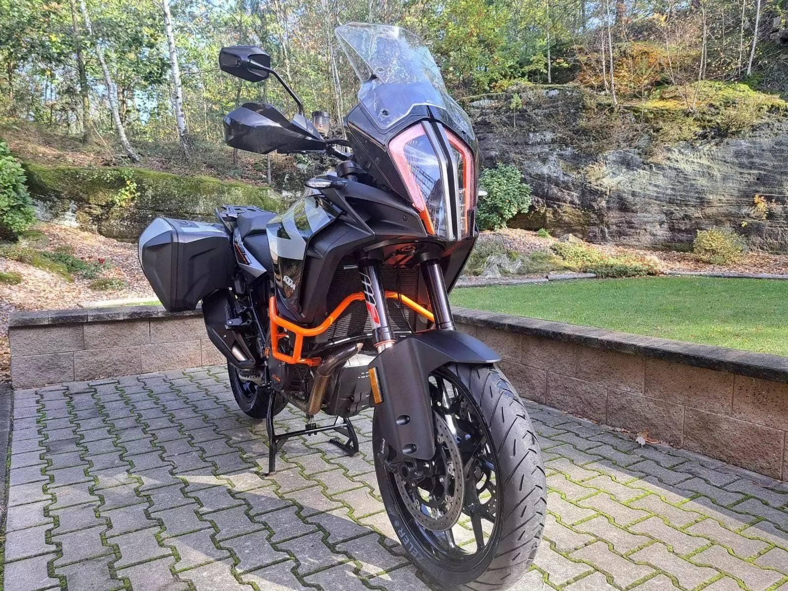Motocykl v TOP stavu a výbavě, nehavarovaný, dovezený z Německa od 1. majitele. Nyní TP CZ 1. majitel. 2 x klíč, KEY CODE CARD, výpis servisní historie KTM, manuál, Pneu a řetězová sada OK. Výbava motocyklu: ABS, BC, TC, volitelné jízdní režimy, tempomat MTC + MSR, HHC, QUICKSHIFTER +, vyhřívané rukojeti, elektronicky stavitelný podvozek motocyklu, padací rámy, boční kufry KTM, hlavní stojan, pancéř. hadičky, diodové blikny, eloxované víčka rámu KTM POWER PARTS, kryty rukojetí. Možnost splátkového prodeje, již při složení 10% akontace vyřízení úvěru do 30 minut!
