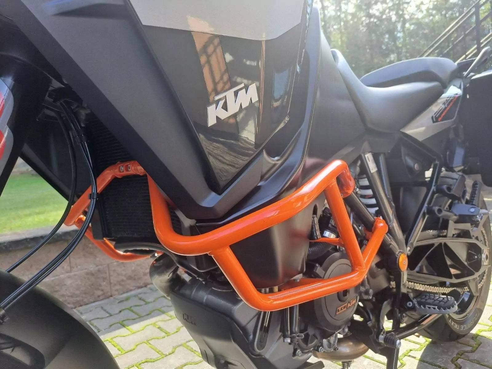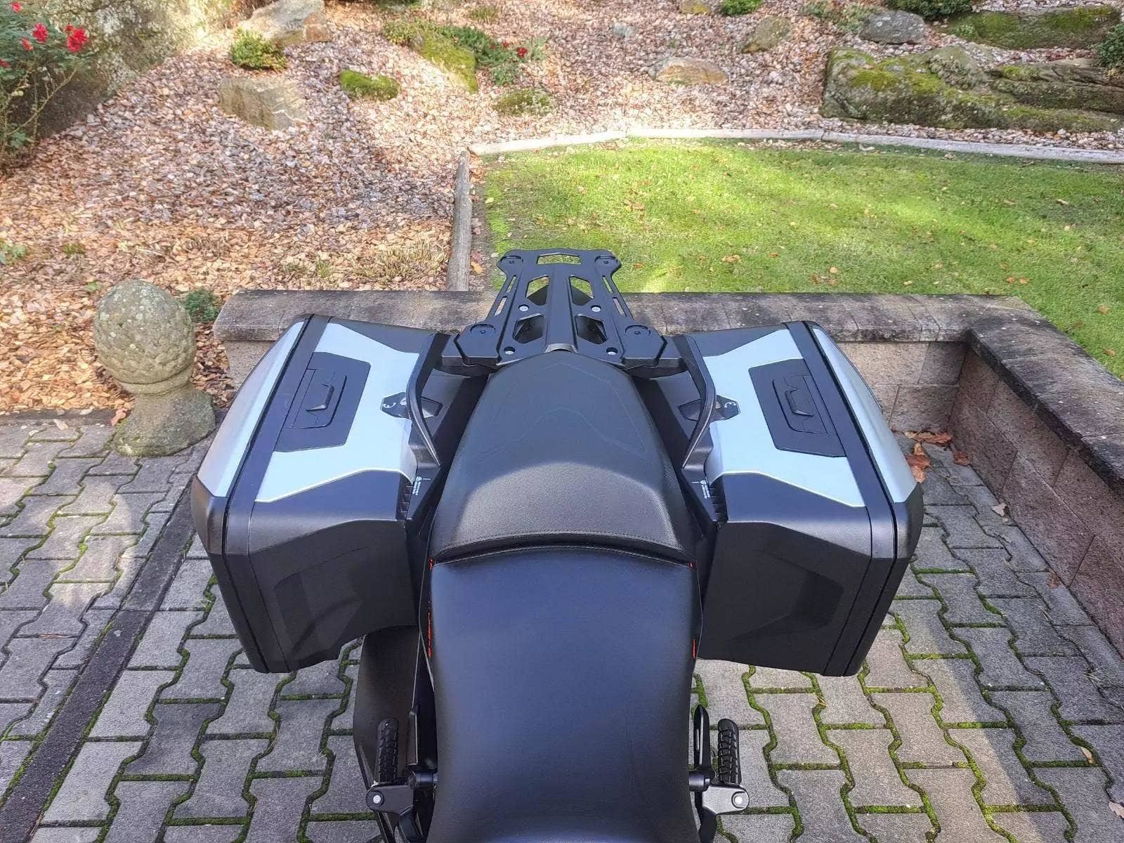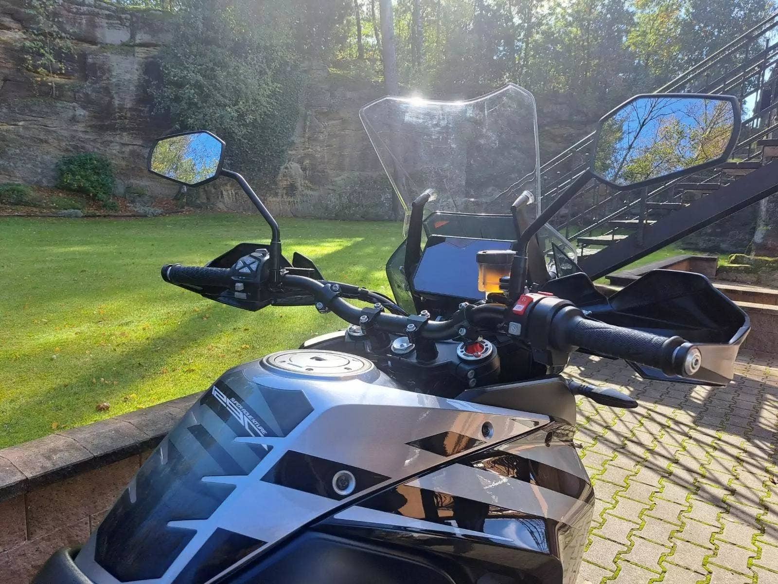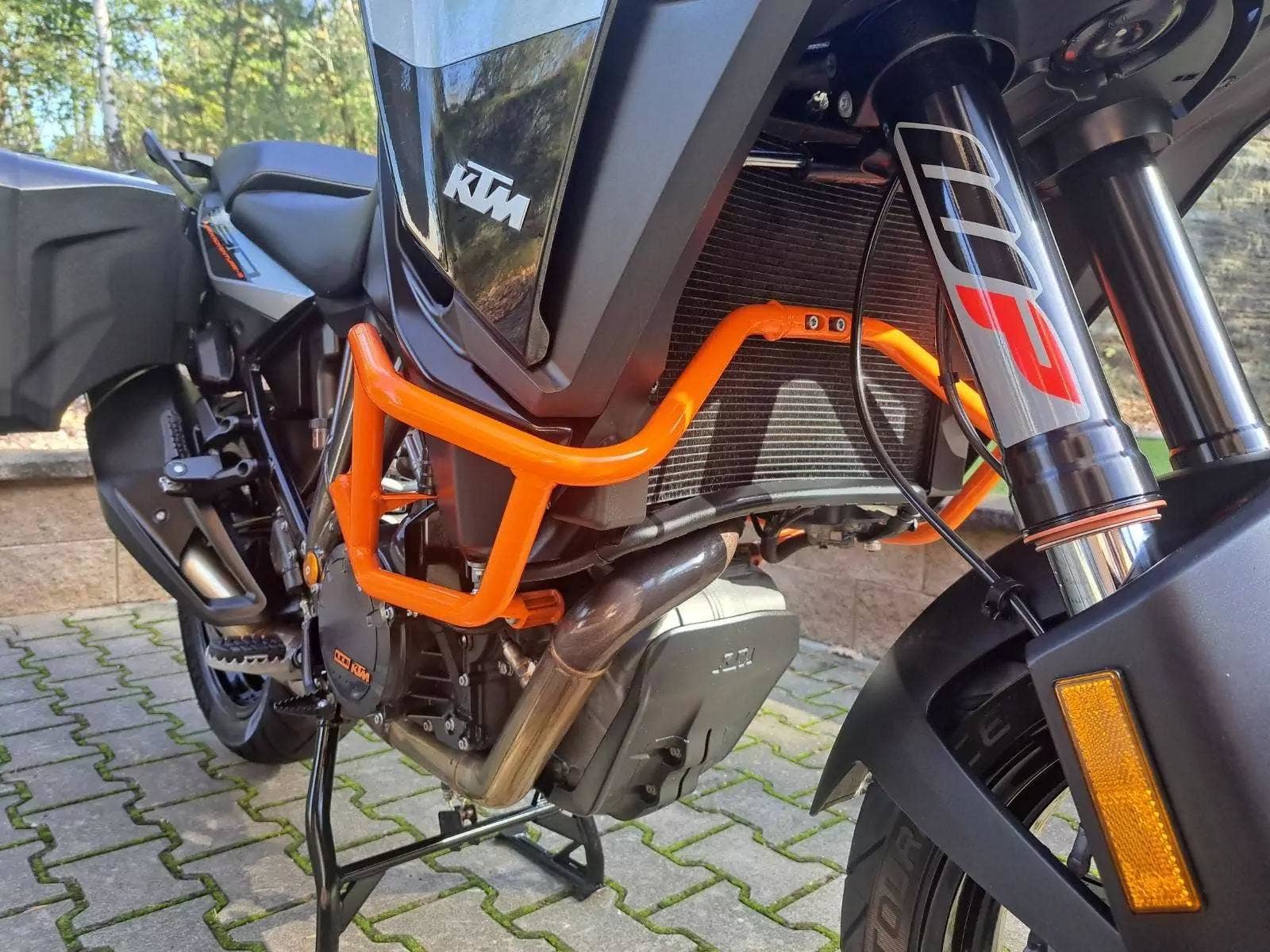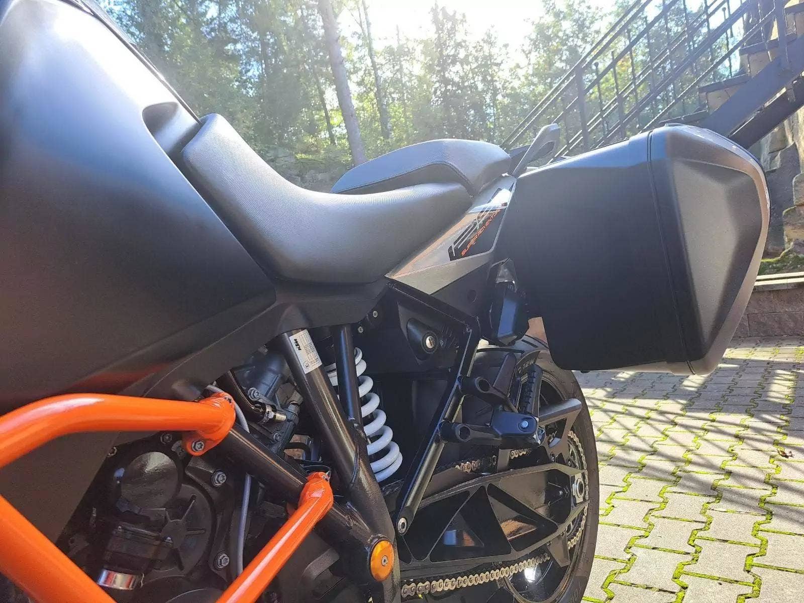 Motocykl v TOP stavu a výbavě, nehavarovaný, dovezený z Německa od 1. majitele. Nyní TP CZ 1. majitel. 2 x klíč, KEY CODE CARD, výpis servisní historie KTM, manuál, Pneu a řetězová sada OK. Výbava motocyklu: ABS, BC, TC, volitelné jízdní režimy, tempomat MTC + MSR, HHC, QUICKSHIFTER +, vyhřívané rukojeti, elektronicky stavitelný podvozek motocyklu, padací rámy, boční kufry KTM, hlavní stojan, pancéř. hadičky, diodové blikny, eloxované víčka rámu KTM POWER PARTS, kryty rukojetí. Možnost splátkového prodeje, již při složení 10% akontace vyřízení úvěru do 30 minut!