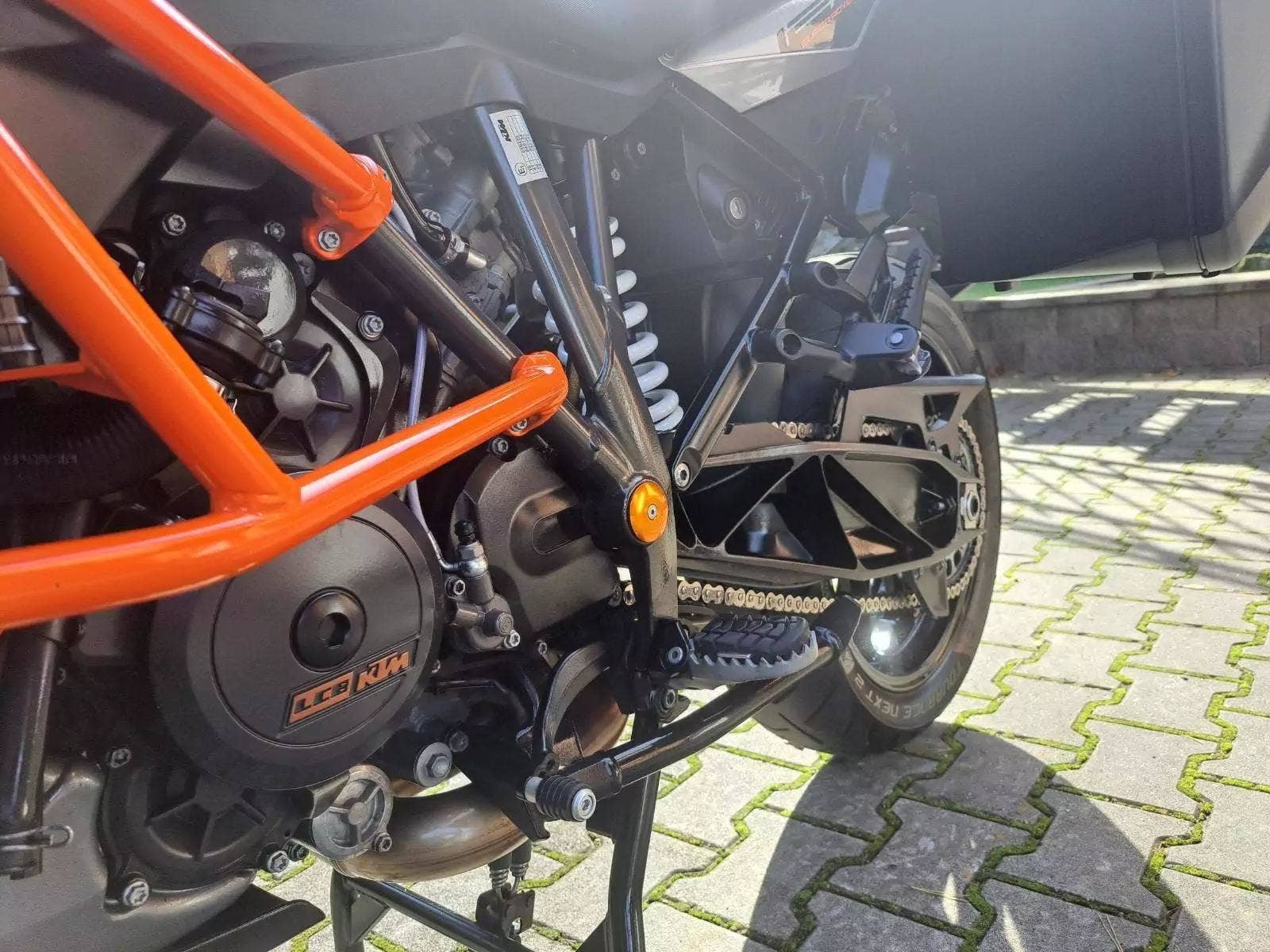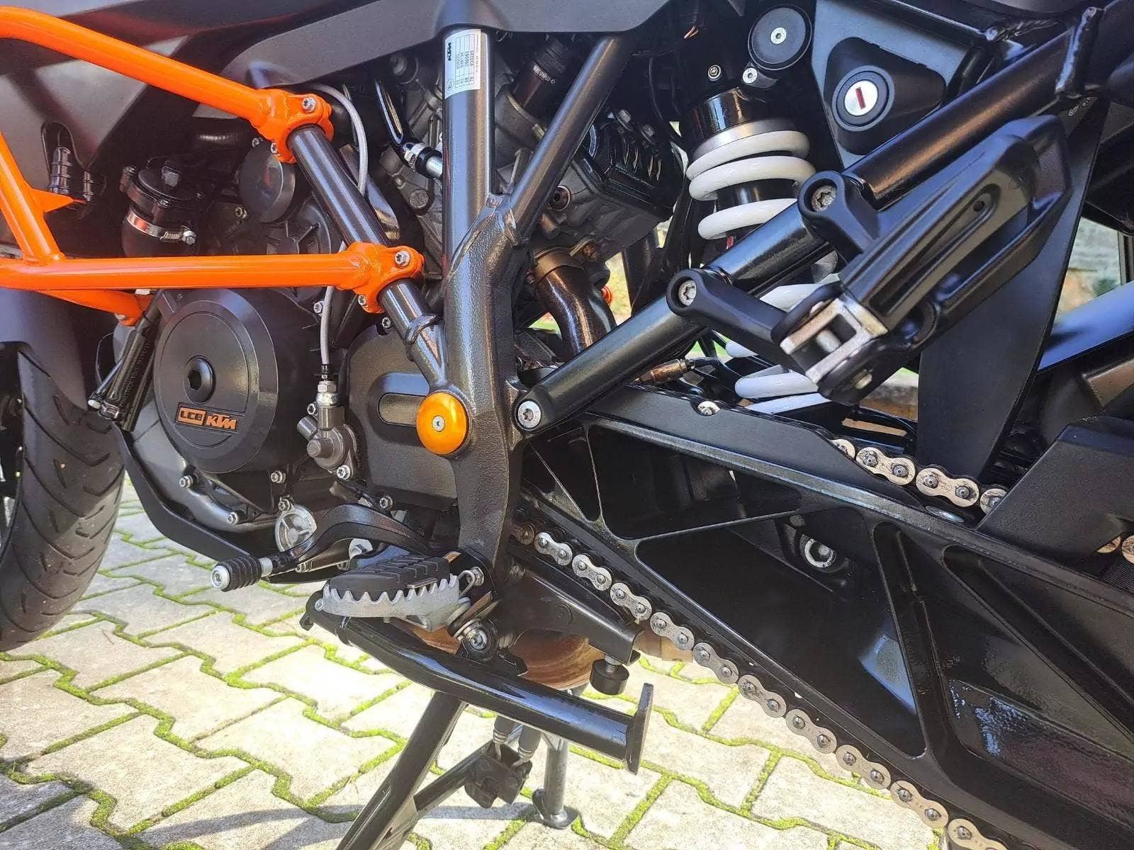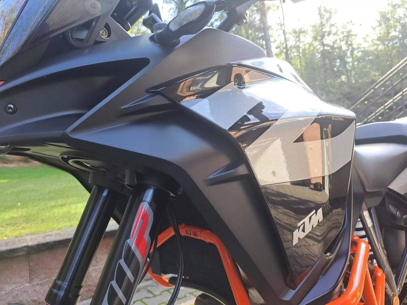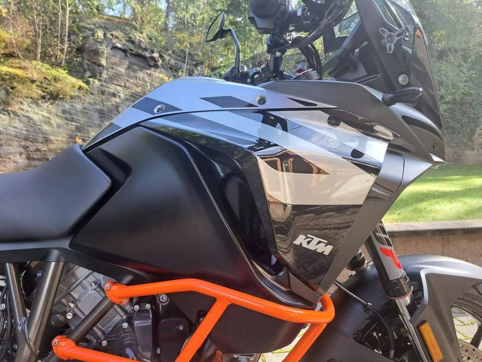 Motocykl v TOP stavu a výbavě, nehavarovaný, dovezený z Německa od 1. majitele. Nyní TP CZ 1. majitel. 2 x klíč, KEY CODE CARD, výpis servisní historie KTM, manuál, Pneu a řetězová sada OK. Výbava motocyklu: ABS, BC, TC, volitelné jízdní režimy, tempomat MTC + MSR, HHC, QUICKSHIFTER +, vyhřívané rukojeti, elektronicky stavitelný podvozek motocyklu, padací rámy, boční kufry KTM, hlavní stojan, pancéř. hadičky, diodové blikny, eloxované víčka rámu KTM POWER PARTS, kryty rukojetí. Možnost splátkového prodeje, již při složení 10% akontace vyřízení úvěru do 30 minut!
