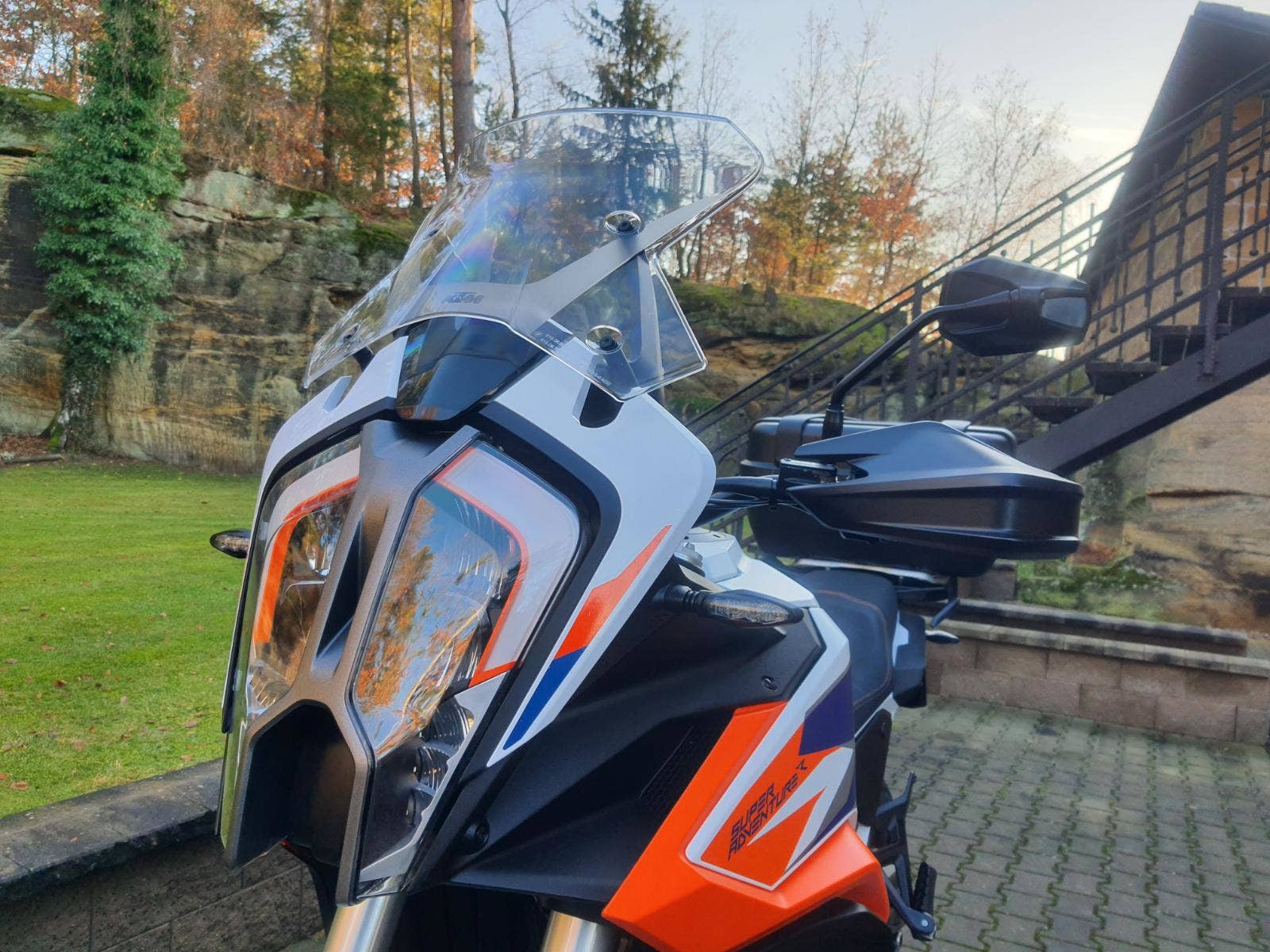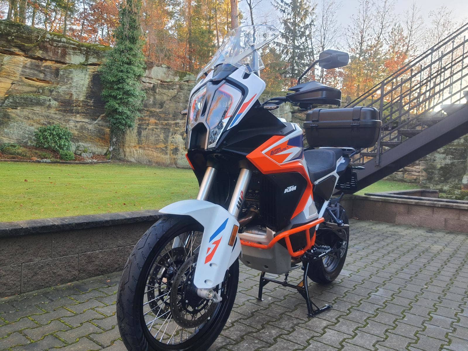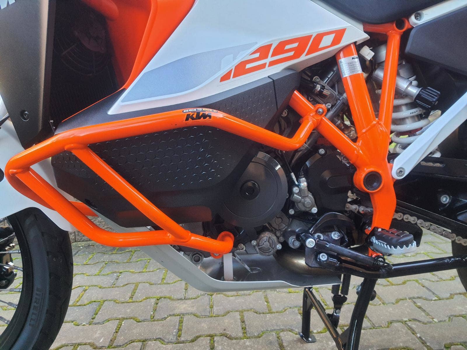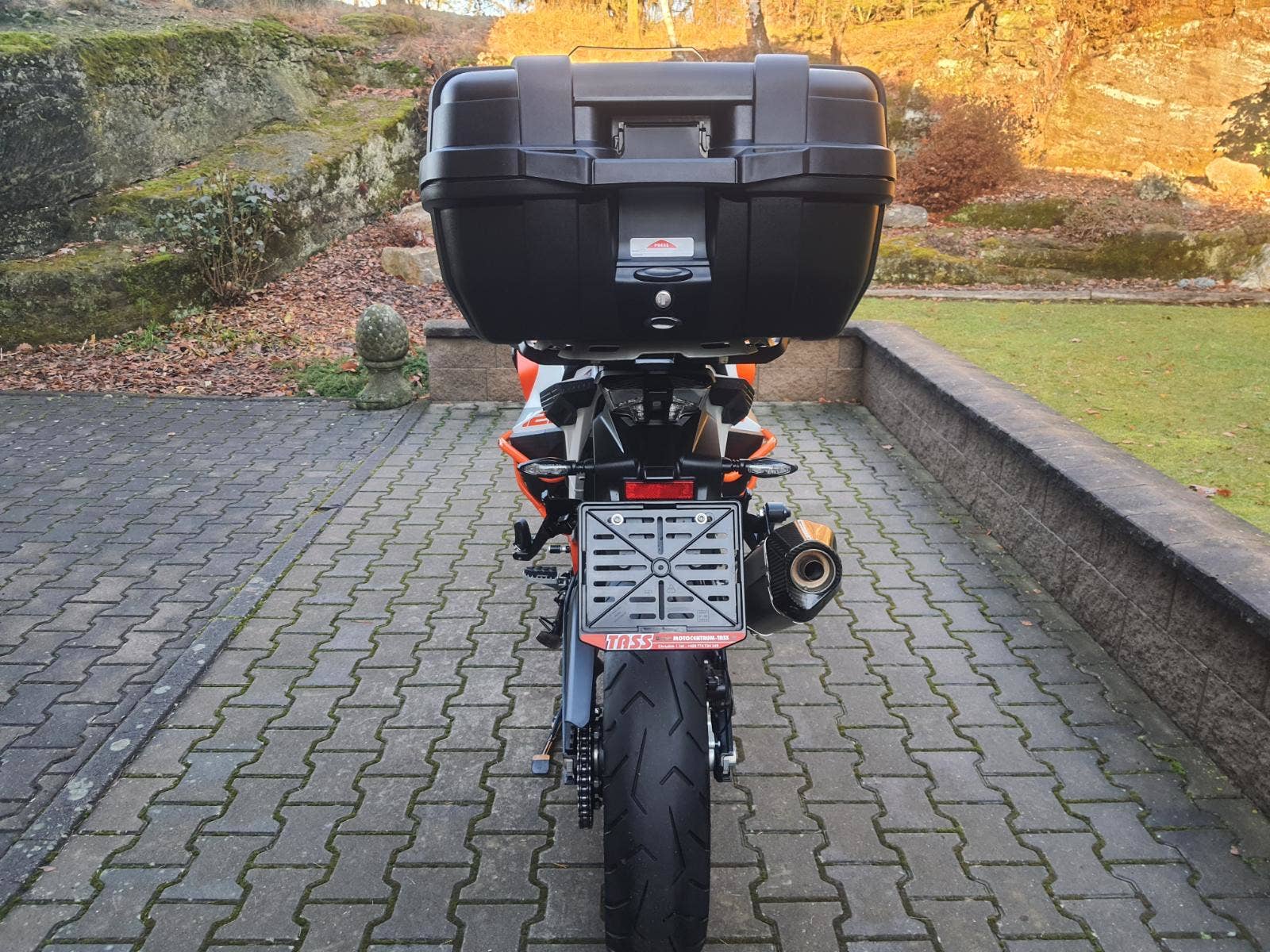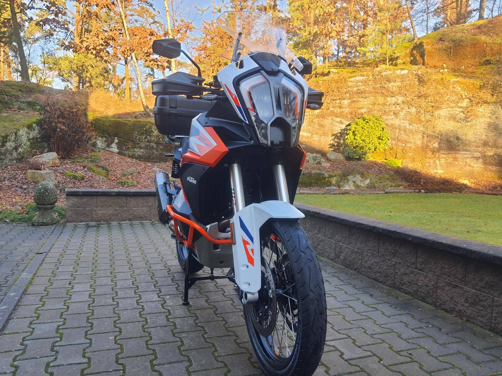 Motocykl v TOP stavu pěkné výbavěm nehavarovaný, dovezený ze zahraničí od autorizovaného pordejce. 1. manitel. 2 x klíč, elektronicky vedená servisní kniha, protokol o servisní prohlídce v KTM v 15 800 km - 08/2025, TECH PACK, pneu a řetězová sada OK. Výbava motocyklu: Padací rámy, hliníkový kryt motoru, padací rámy, kryty rukojetí, vyhřívané rukojeti, QUICKSHIFTER, noič na vrchní kufr od GIVI, + vrchní kufr KAPPA GARDA 52l, LADĚNÝ HOMOLOGOVANÝ VÝFUK MIVV, zásuvka 12V. Popis Zajímavé výhody ABS MTC Motor: Zdvihový objem1301 cm3 Max. výkon118 kW / 160 k Kroutící moment138 Nm Vrtání × zdvih (mm) 108 x 71 mm Motor4 dobý, vidlicový 2 válec, V 75° KarburaceElektronické vstřikování paliva SpojkaPASC, hydraulicky ovládaná ChlazeníKapalinové MazáníNucené olejové mazání se 3 olejovými čerpadly StartérElektrický Typ převodovky6 rychlostí, manuální EMSKeihin EMS s RBW a tempomat, dvojité zapalování CO2 emise134 g/km Spotřeba paliva5,7 l/100 km Podvozek: Provedení rámuChrom-molybdenový trubkový rám, obalovaný práškem Úhel hlavy řízení64,7° Odpružení předníWP XPLOR USD? 48 mm Odpružení zadníWP XPLOR PDS Zdvih pérování přední/zadní220/220 mm Světlá výška242 mm Výška sedla880 mm Velikost předního kolaPneu 90/90-R21 Velikost zadního kolaPneu 150/70-R18 Přední brzda2x čtyřpístkový brzdový třmen Brembo Zadní brzdaDvoupístkový pevný brzdový třmen Brembo Průměr brzdového kotouče přední /zadní320/267 mm Řetěz525 X-Ring Objem palivové nádrže (litry) 23 litrů Světlomety přední + zadníDuální LED (1 dálková/1 potkávací) Suchá hmotnost (kg) 221 kg Možnost splátkového prodeje, již při složení 10% akontace vyřízení úvěru do 30 minut!