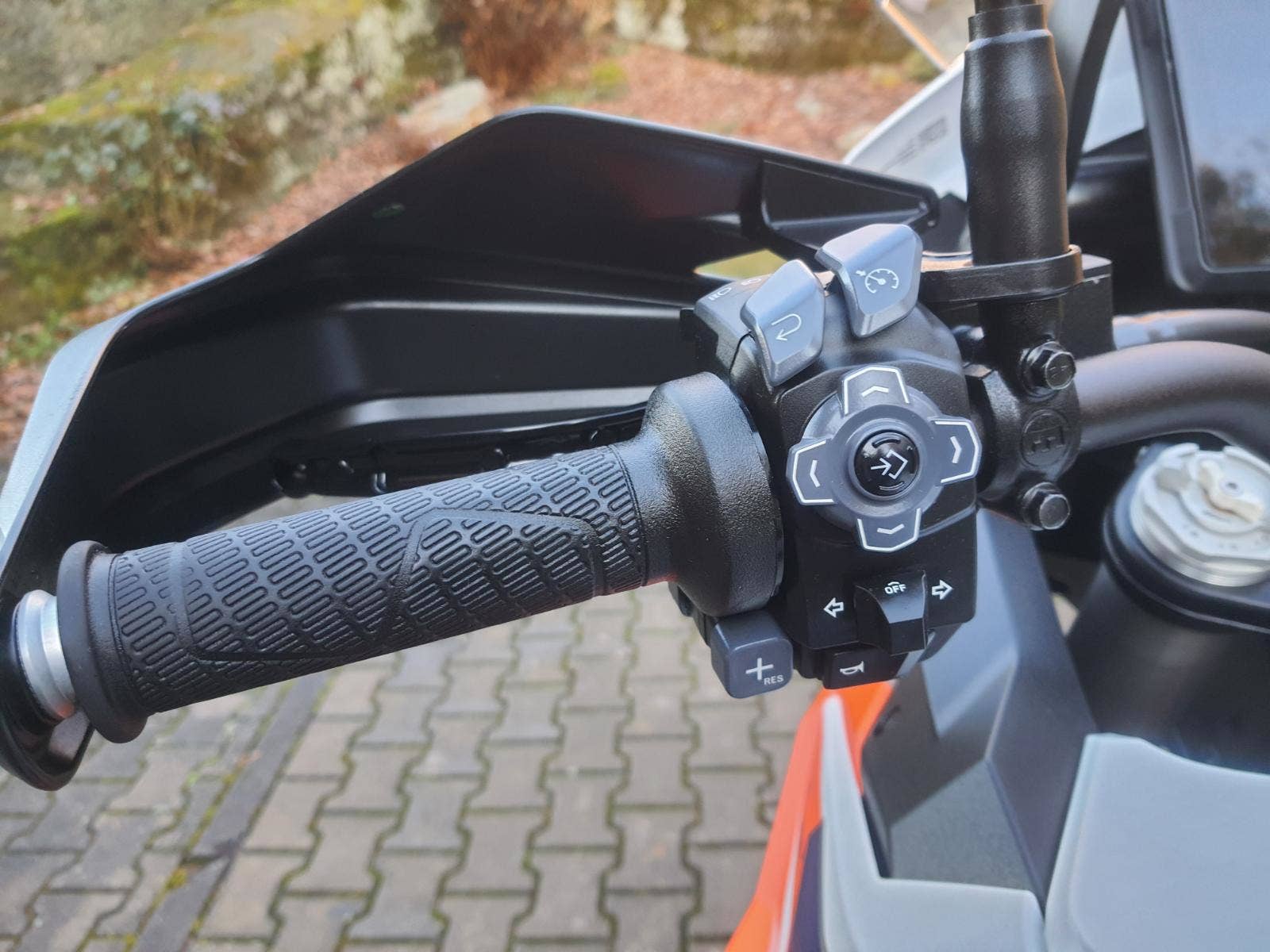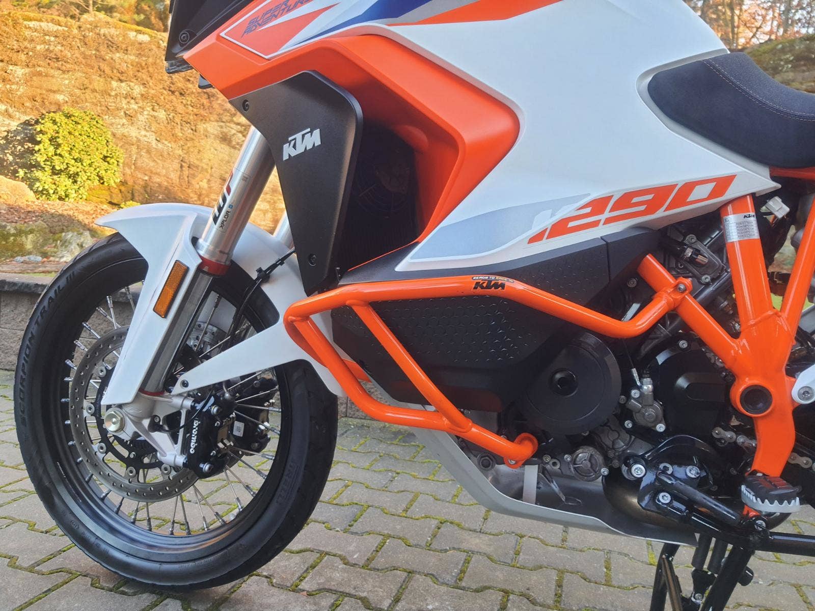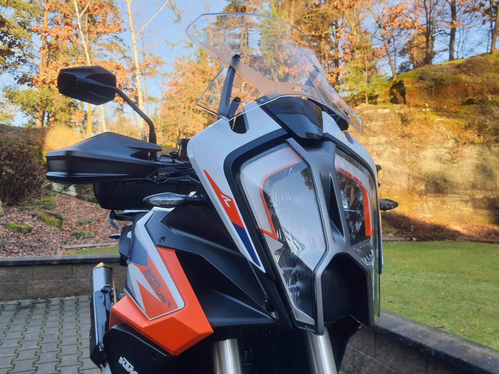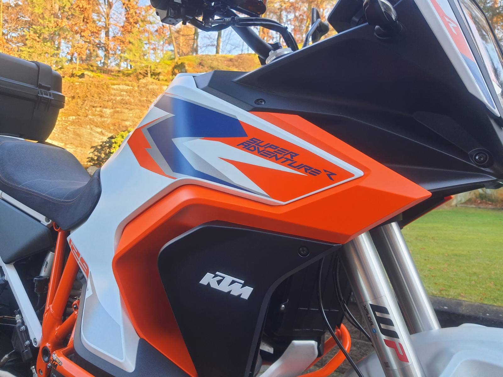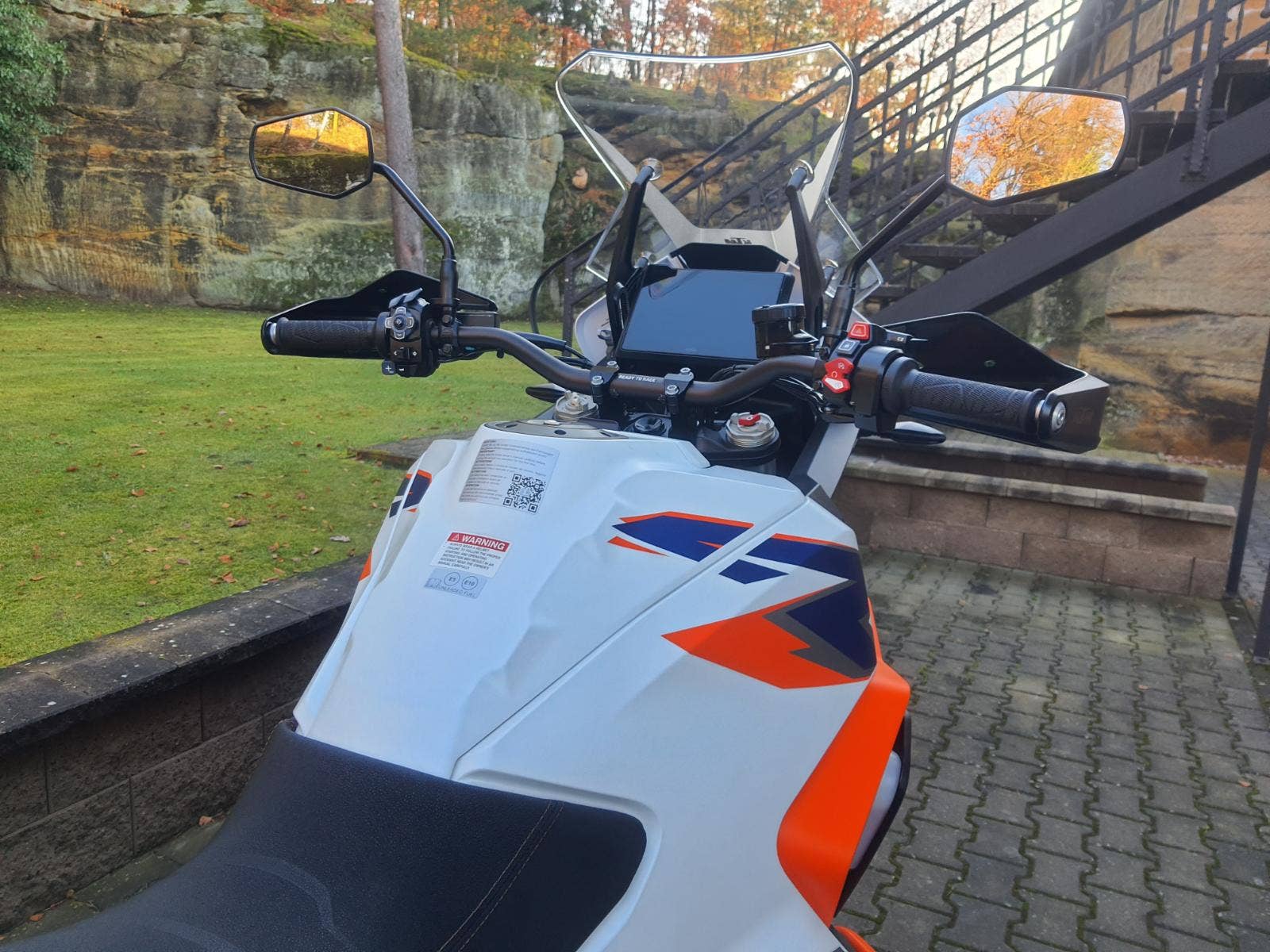 Motocykl v TOP stavu pěkné výbavěm nehavarovaný, dovezený ze zahraničí od autorizovaného pordejce. 1. manitel. 2 x klíč, elektronicky vedená servisní kniha, protokol o servisní prohlídce v KTM v 15 800 km - 08/2025, TECH PACK, pneu a řetězová sada OK. Výbava motocyklu: Padací rámy, hliníkový kryt motoru, padací rámy, kryty rukojetí, vyhřívané rukojeti, QUICKSHIFTER, noič na vrchní kufr od GIVI, + vrchní kufr KAPPA GARDA 52l, LADĚNÝ HOMOLOGOVANÝ VÝFUK MIVV, zásuvka 12V. Popis Zajímavé výhody ABS MTC Motor: Zdvihový objem1301 cm3 Max. výkon118 kW / 160 k Kroutící moment138 Nm Vrtání × zdvih (mm) 108 x 71 mm Motor4 dobý, vidlicový 2 válec, V 75° KarburaceElektronické vstřikování paliva SpojkaPASC, hydraulicky ovládaná ChlazeníKapalinové MazáníNucené olejové mazání se 3 olejovými čerpadly StartérElektrický Typ převodovky6 rychlostí, manuální EMSKeihin EMS s RBW a tempomat, dvojité zapalování CO2 emise134 g/km Spotřeba paliva5,7 l/100 km Podvozek: Provedení rámuChrom-molybdenový trubkový rám, obalovaný práškem Úhel hlavy řízení64,7° Odpružení předníWP XPLOR USD? 48 mm Odpružení zadníWP XPLOR PDS Zdvih pérování přední/zadní220/220 mm Světlá výška242 mm Výška sedla880 mm Velikost předního kolaPneu 90/90-R21 Velikost zadního kolaPneu 150/70-R18 Přední brzda2x čtyřpístkový brzdový třmen Brembo Zadní brzdaDvoupístkový pevný brzdový třmen Brembo Průměr brzdového kotouče přední /zadní320/267 mm Řetěz525 X-Ring Objem palivové nádrže (litry) 23 litrů Světlomety přední + zadníDuální LED (1 dálková/1 potkávací) Suchá hmotnost (kg) 221 kg Možnost splátkového prodeje, již při složení 10% akontace vyřízení úvěru do 30 minut!