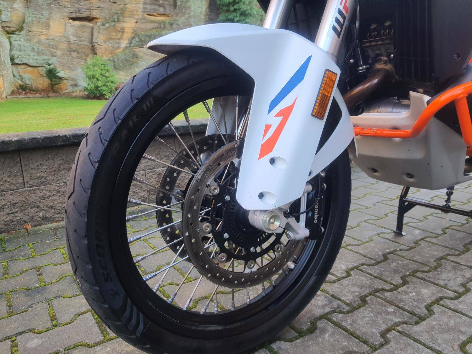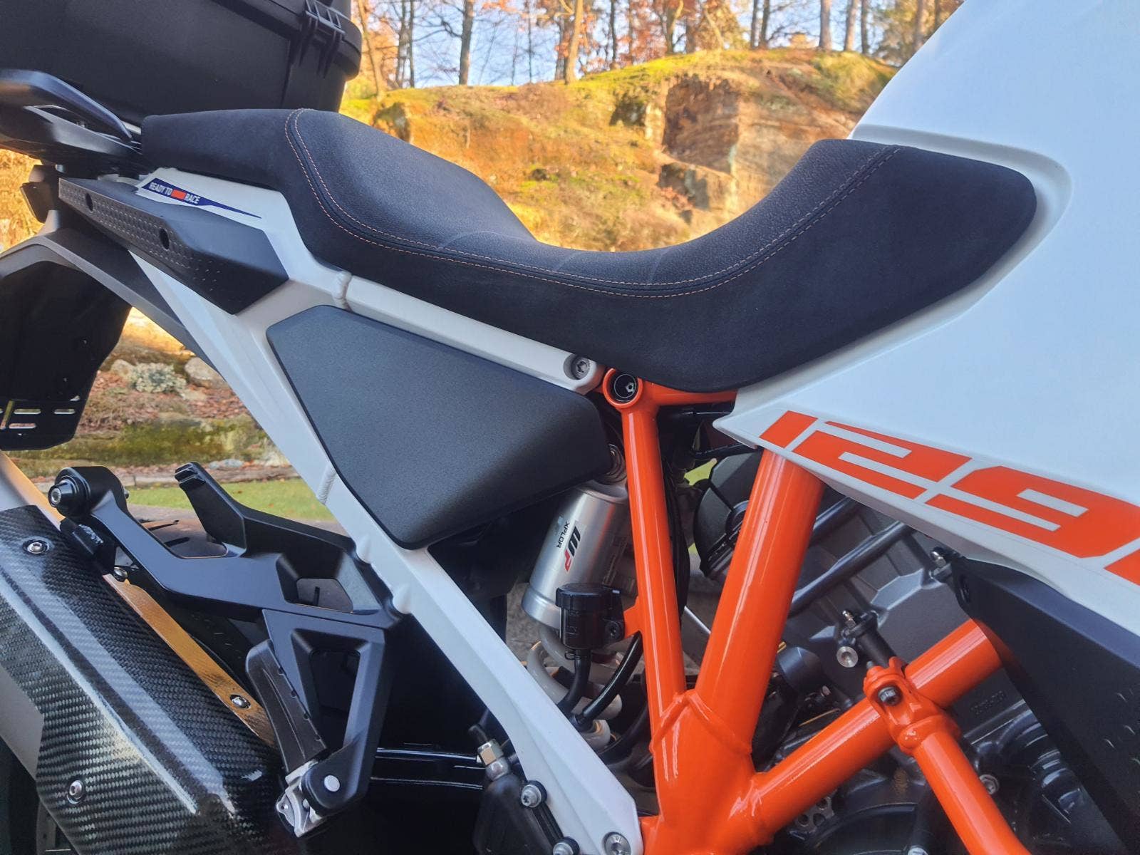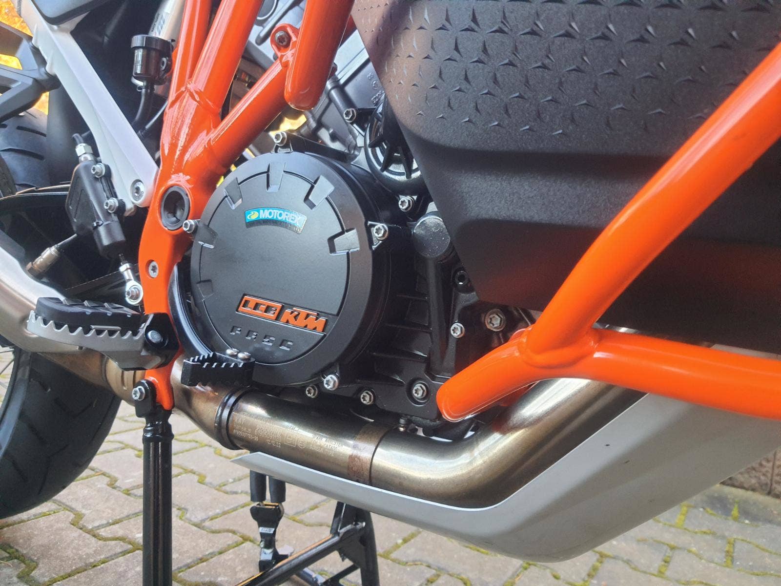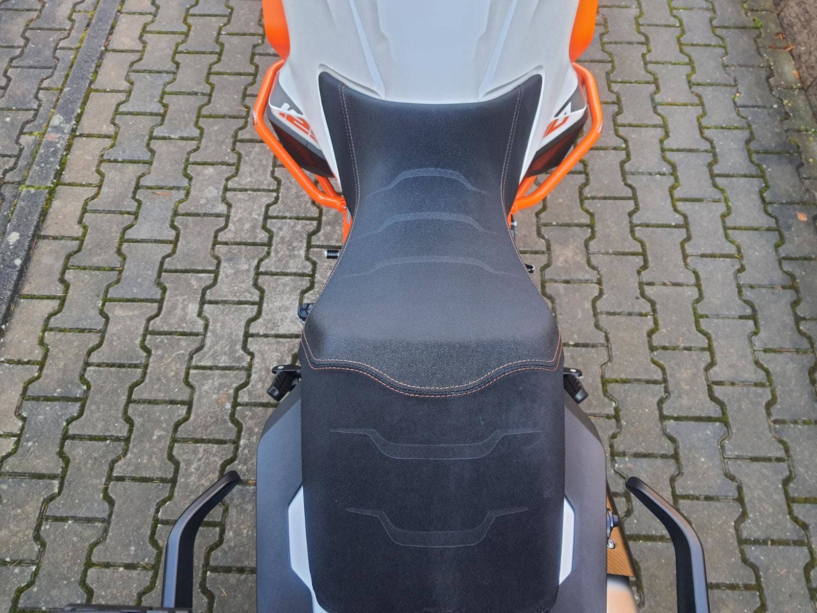 Motocykl v TOP stavu pěkné výbavěm nehavarovaný, dovezený ze zahraničí od autorizovaného pordejce. 1. manitel. 2 x klíč, elektronicky vedená servisní kniha, protokol o servisní prohlídce v KTM v 15 800 km - 08/2025, TECH PACK, pneu a řetězová sada OK. Výbava motocyklu: Padací rámy, hliníkový kryt motoru, padací rámy, kryty rukojetí, vyhřívané rukojeti, QUICKSHIFTER, noič na vrchní kufr od GIVI, + vrchní kufr KAPPA GARDA 52l, LADĚNÝ HOMOLOGOVANÝ VÝFUK MIVV, zásuvka 12V. Popis Zajímavé výhody ABS MTC Motor: Zdvihový objem1301 cm3 Max. výkon118 kW / 160 k Kroutící moment138 Nm Vrtání × zdvih (mm) 108 x 71 mm Motor4 dobý, vidlicový 2 válec, V 75° KarburaceElektronické vstřikování paliva SpojkaPASC, hydraulicky ovládaná ChlazeníKapalinové MazáníNucené olejové mazání se 3 olejovými čerpadly StartérElektrický Typ převodovky6 rychlostí, manuální EMSKeihin EMS s RBW a tempomat, dvojité zapalování CO2 emise134 g/km Spotřeba paliva5,7 l/100 km Podvozek: Provedení rámuChrom-molybdenový trubkový rám, obalovaný práškem Úhel hlavy řízení64,7° Odpružení předníWP XPLOR USD? 48 mm Odpružení zadníWP XPLOR PDS Zdvih pérování přední/zadní220/220 mm Světlá výška242 mm Výška sedla880 mm Velikost předního kolaPneu 90/90-R21 Velikost zadního kolaPneu 150/70-R18 Přední brzda2x čtyřpístkový brzdový třmen Brembo Zadní brzdaDvoupístkový pevný brzdový třmen Brembo Průměr brzdového kotouče přední /zadní320/267 mm Řetěz525 X-Ring Objem palivové nádrže (litry) 23 litrů Světlomety přední + zadníDuální LED (1 dálková/1 potkávací) Suchá hmotnost (kg) 221 kg Možnost splátkového prodeje, již při složení 10% akontace vyřízení úvěru do 30 minut!