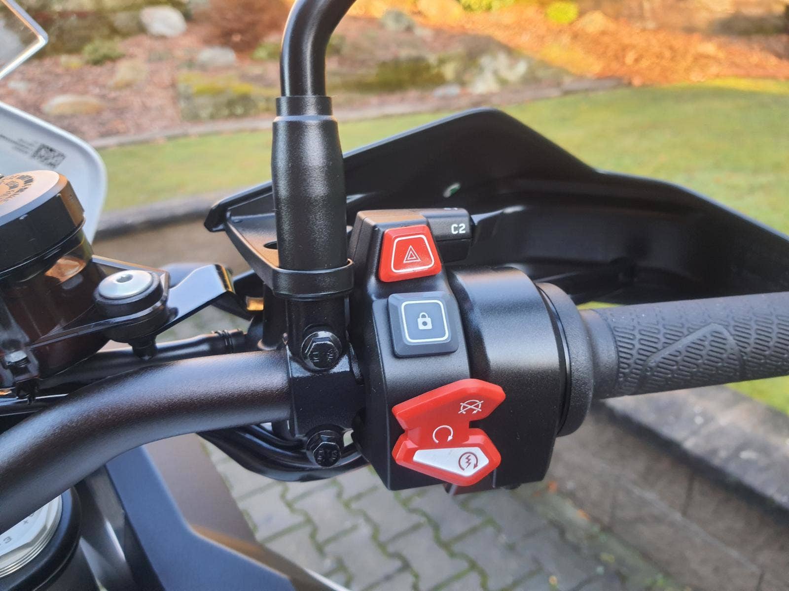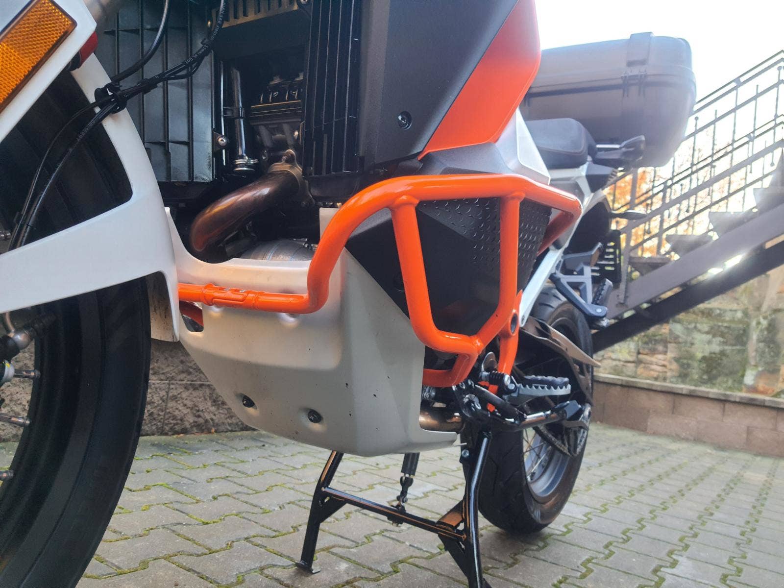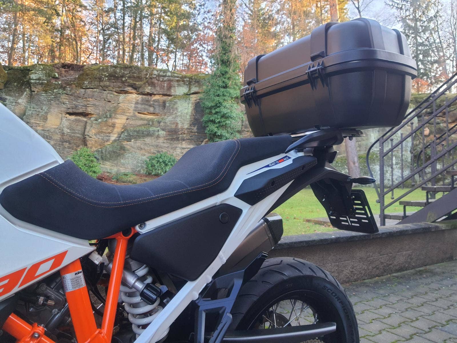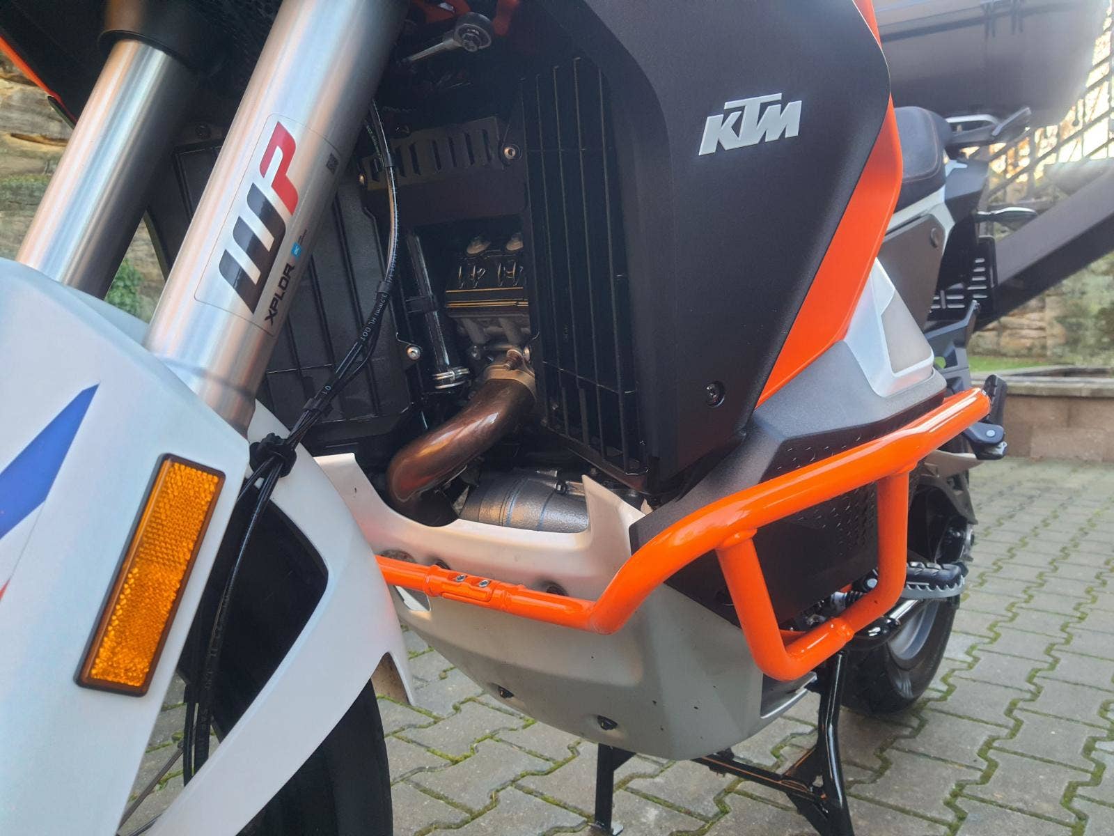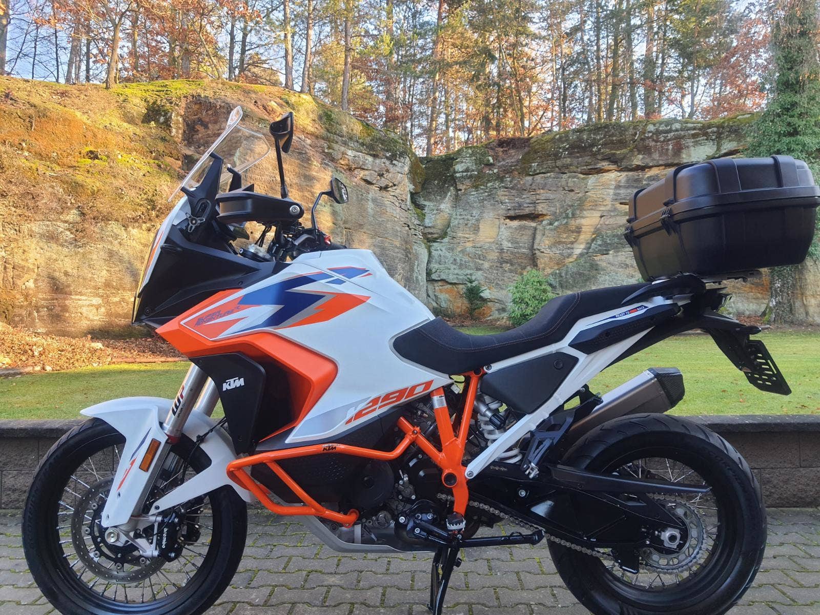 Motocykl v TOP stavu pěkné výbavěm nehavarovaný, dovezený ze zahraničí od autorizovaného pordejce. 1. manitel. 2 x klíč, elektronicky vedená servisní kniha, protokol o servisní prohlídce v KTM v 15 800 km - 08/2025, TECH PACK, pneu a řetězová sada OK. Výbava motocyklu: Padací rámy, hliníkový kryt motoru, padací rámy, kryty rukojetí, vyhřívané rukojeti, QUICKSHIFTER, noič na vrchní kufr od GIVI, + vrchní kufr KAPPA GARDA 52l, LADĚNÝ HOMOLOGOVANÝ VÝFUK MIVV, zásuvka 12V. Popis Zajímavé výhody ABS MTC Motor: Zdvihový objem1301 cm3 Max. výkon118 kW / 160 k Kroutící moment138 Nm Vrtání × zdvih (mm) 108 x 71 mm Motor4 dobý, vidlicový 2 válec, V 75° KarburaceElektronické vstřikování paliva SpojkaPASC, hydraulicky ovládaná ChlazeníKapalinové MazáníNucené olejové mazání se 3 olejovými čerpadly StartérElektrický Typ převodovky6 rychlostí, manuální EMSKeihin EMS s RBW a tempomat, dvojité zapalování CO2 emise134 g/km Spotřeba paliva5,7 l/100 km Podvozek: Provedení rámuChrom-molybdenový trubkový rám, obalovaný práškem Úhel hlavy řízení64,7° Odpružení předníWP XPLOR USD? 48 mm Odpružení zadníWP XPLOR PDS Zdvih pérování přední/zadní220/220 mm Světlá výška242 mm Výška sedla880 mm Velikost předního kolaPneu 90/90-R21 Velikost zadního kolaPneu 150/70-R18 Přední brzda2x čtyřpístkový brzdový třmen Brembo Zadní brzdaDvoupístkový pevný brzdový třmen Brembo Průměr brzdového kotouče přední /zadní320/267 mm Řetěz525 X-Ring Objem palivové nádrže (litry) 23 litrů Světlomety přední + zadníDuální LED (1 dálková/1 potkávací) Suchá hmotnost (kg) 221 kg Možnost splátkového prodeje, již při složení 10% akontace vyřízení úvěru do 30 minut!