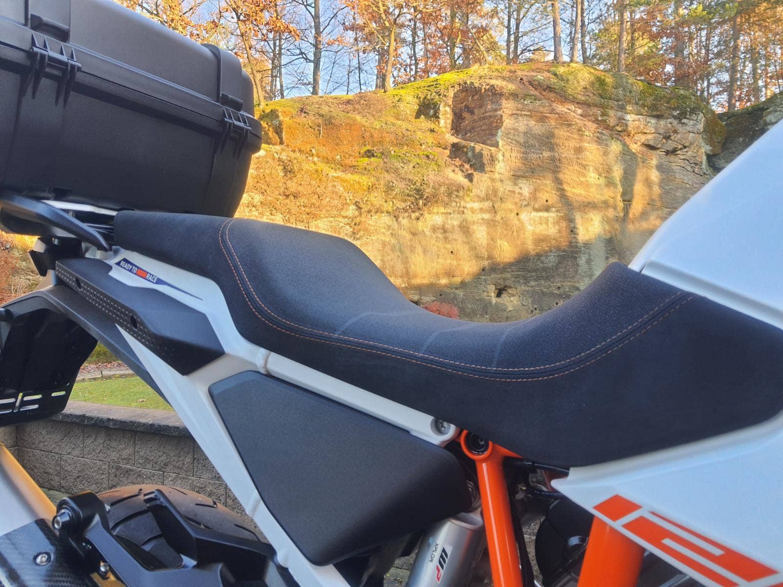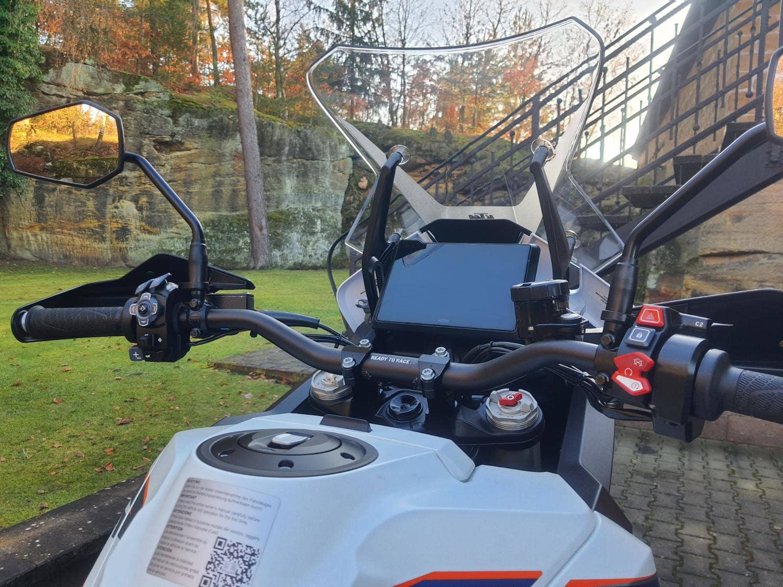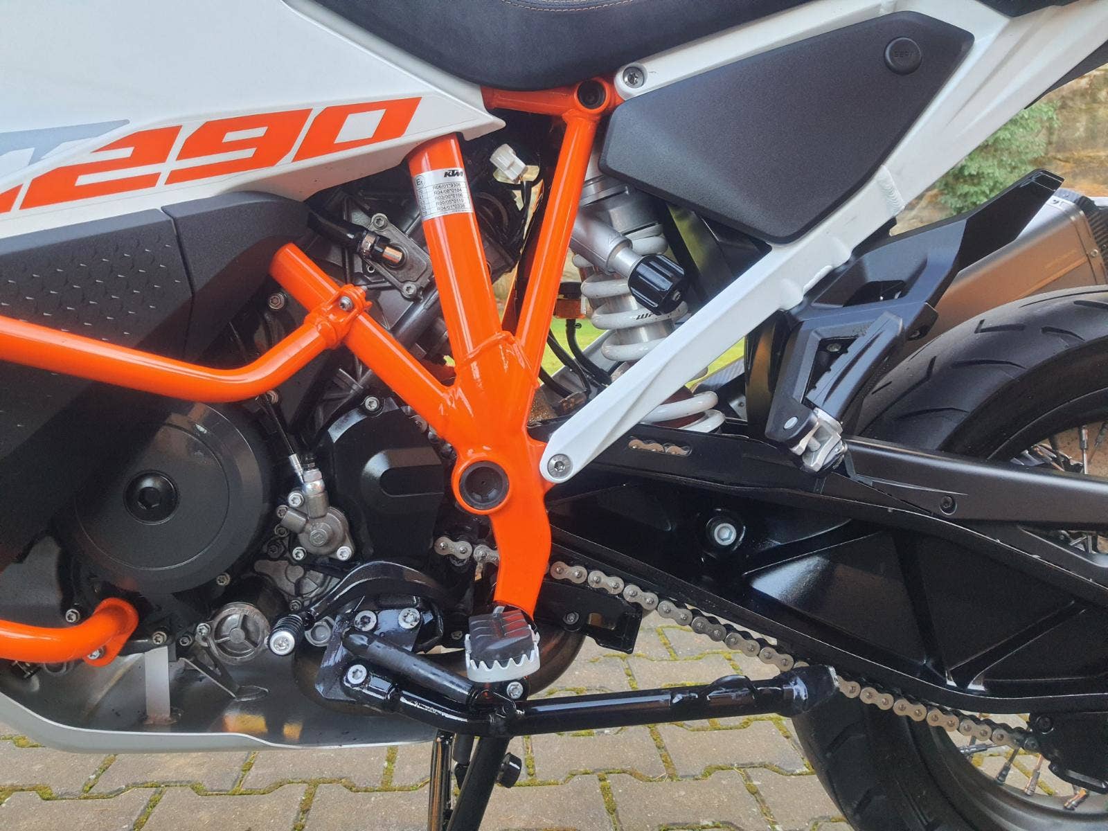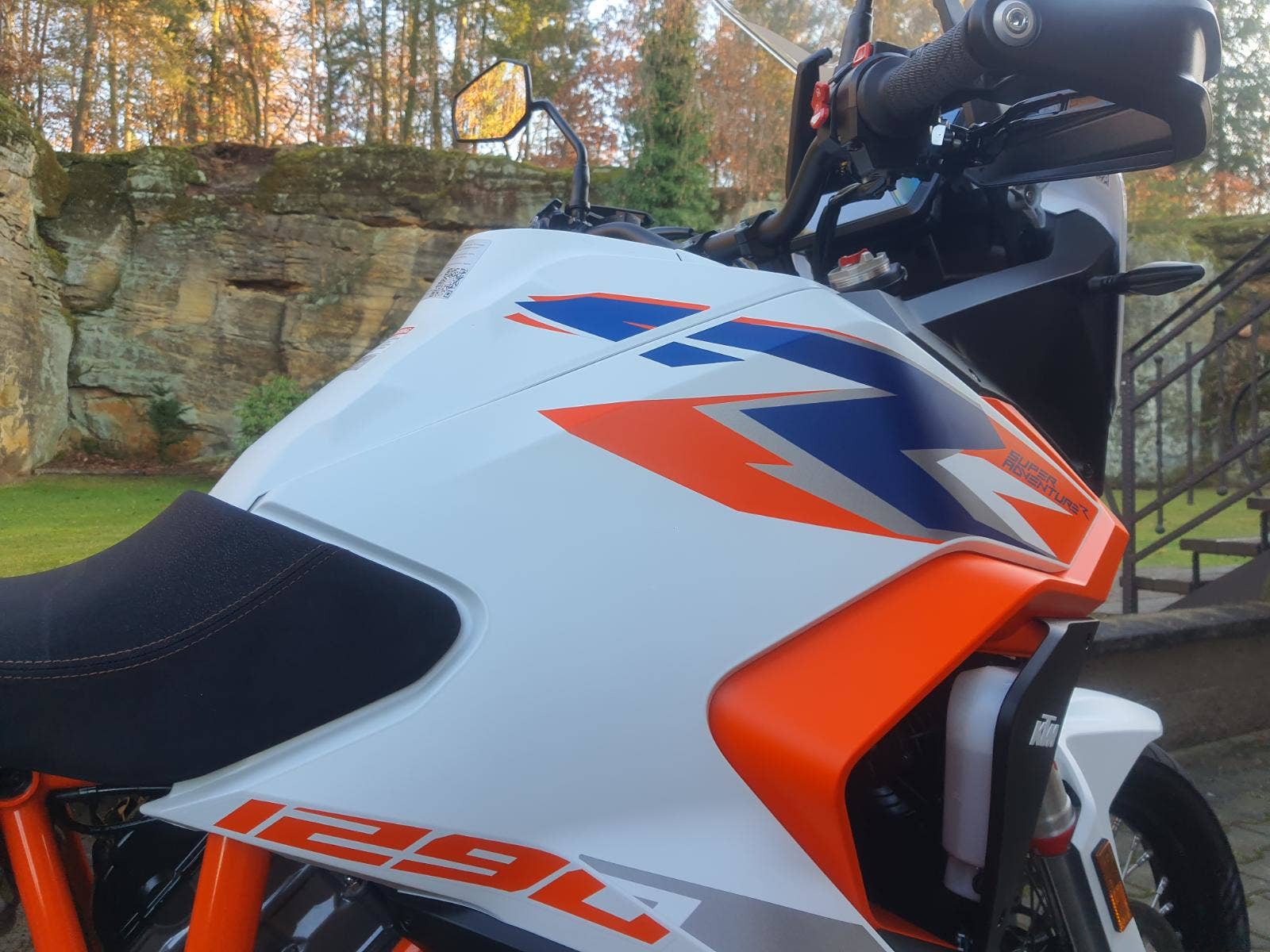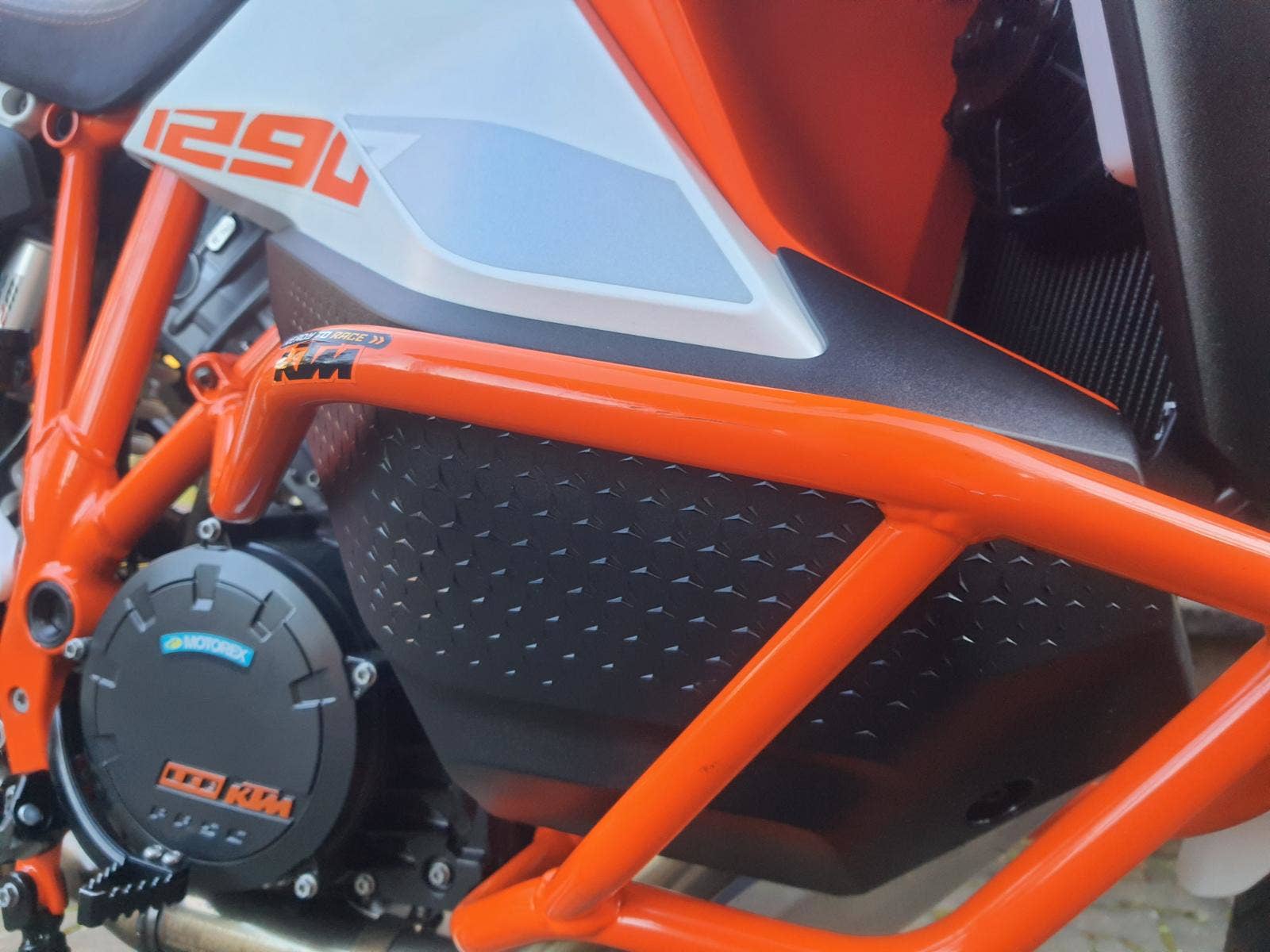 Motocykl v TOP stavu pěkné výbavěm nehavarovaný, dovezený ze zahraničí od autorizovaného pordejce. 1. manitel. 2 x klíč, elektronicky vedená servisní kniha, protokol o servisní prohlídce v KTM v 15 800 km - 08/2025, TECH PACK, pneu a řetězová sada OK. Výbava motocyklu: Padací rámy, hliníkový kryt motoru, padací rámy, kryty rukojetí, vyhřívané rukojeti, QUICKSHIFTER, noič na vrchní kufr od GIVI, + vrchní kufr KAPPA GARDA 52l, LADĚNÝ HOMOLOGOVANÝ VÝFUK MIVV, zásuvka 12V. Popis Zajímavé výhody ABS MTC Motor: Zdvihový objem1301 cm3 Max. výkon118 kW / 160 k Kroutící moment138 Nm Vrtání × zdvih (mm) 108 x 71 mm Motor4 dobý, vidlicový 2 válec, V 75° KarburaceElektronické vstřikování paliva SpojkaPASC, hydraulicky ovládaná ChlazeníKapalinové MazáníNucené olejové mazání se 3 olejovými čerpadly StartérElektrický Typ převodovky6 rychlostí, manuální EMSKeihin EMS s RBW a tempomat, dvojité zapalování CO2 emise134 g/km Spotřeba paliva5,7 l/100 km Podvozek: Provedení rámuChrom-molybdenový trubkový rám, obalovaný práškem Úhel hlavy řízení64,7° Odpružení předníWP XPLOR USD? 48 mm Odpružení zadníWP XPLOR PDS Zdvih pérování přední/zadní220/220 mm Světlá výška242 mm Výška sedla880 mm Velikost předního kolaPneu 90/90-R21 Velikost zadního kolaPneu 150/70-R18 Přední brzda2x čtyřpístkový brzdový třmen Brembo Zadní brzdaDvoupístkový pevný brzdový třmen Brembo Průměr brzdového kotouče přední /zadní320/267 mm Řetěz525 X-Ring Objem palivové nádrže (litry) 23 litrů Světlomety přední + zadníDuální LED (1 dálková/1 potkávací) Suchá hmotnost (kg) 221 kg Možnost splátkového prodeje, již při složení 10% akontace vyřízení úvěru do 30 minut!