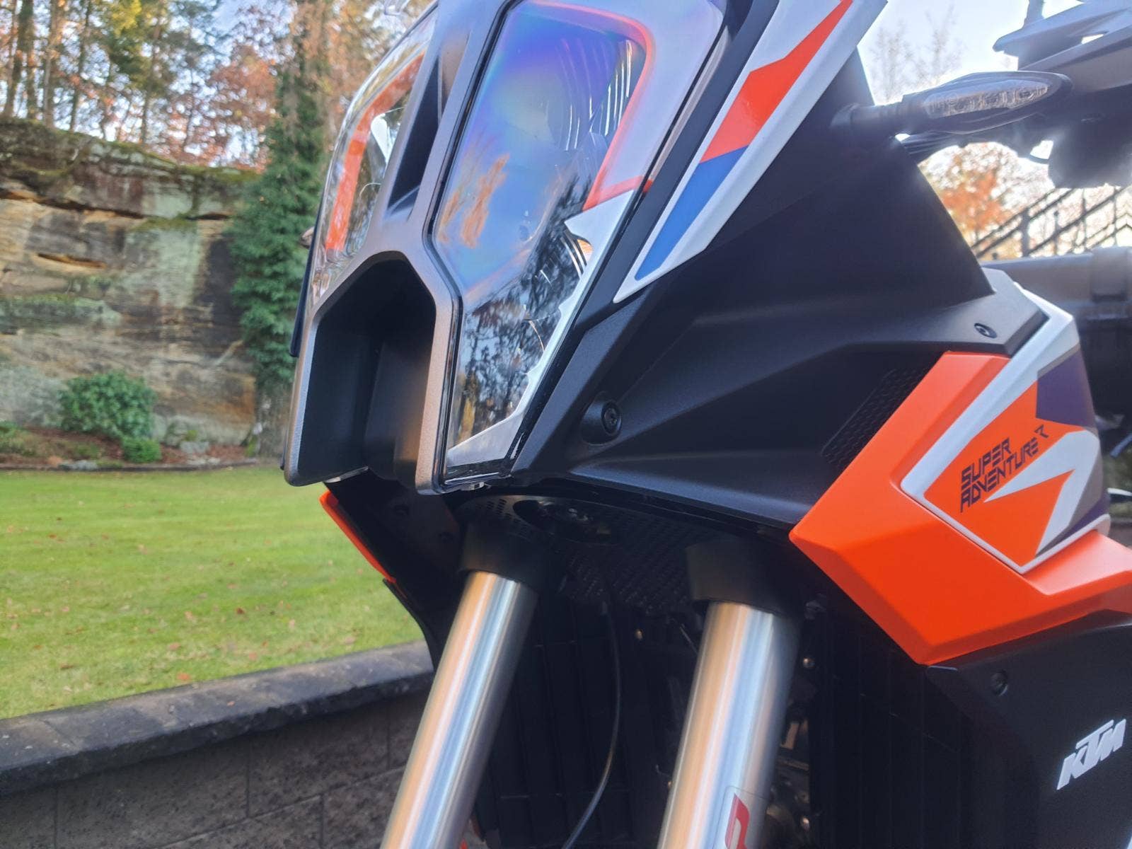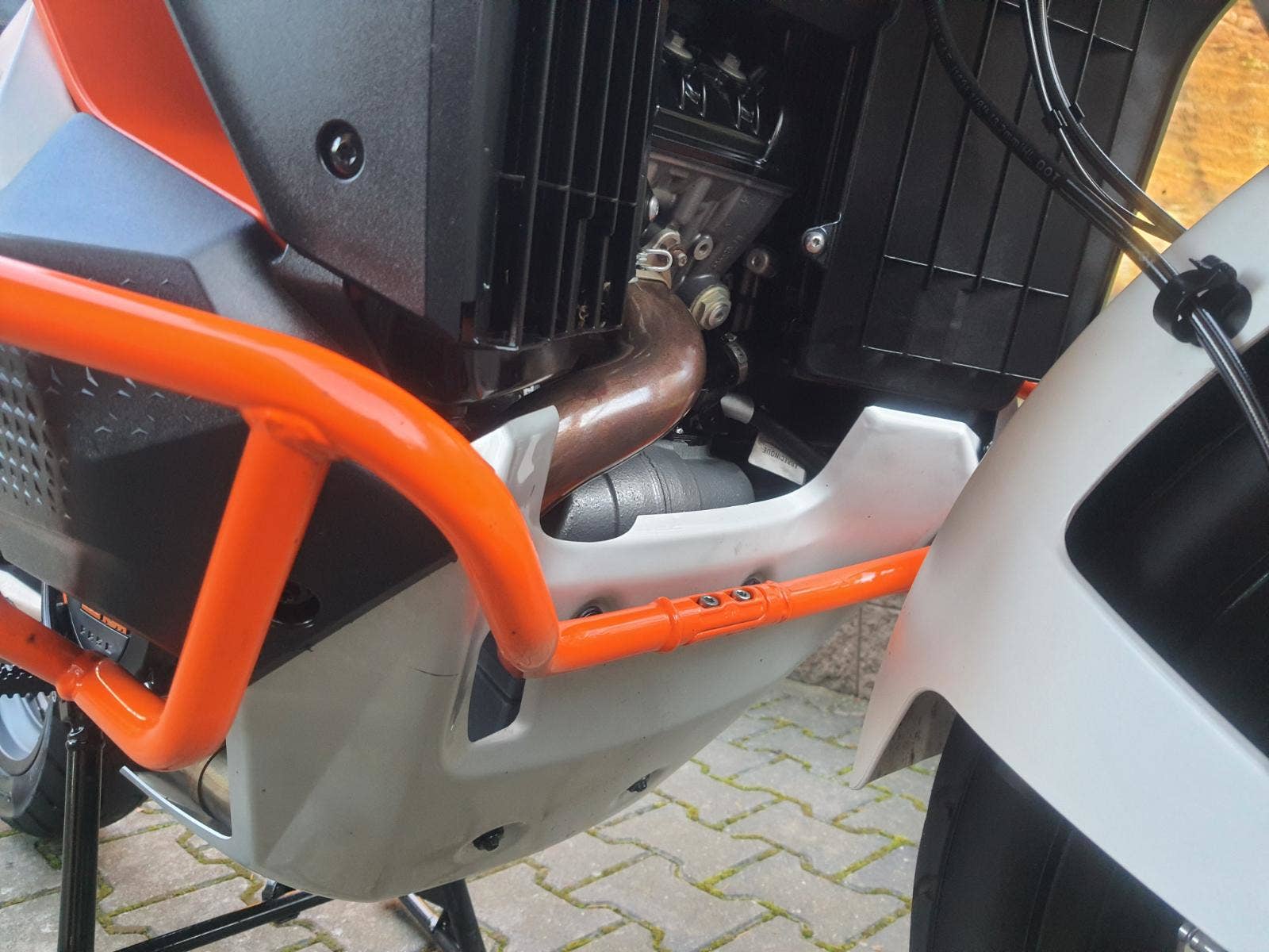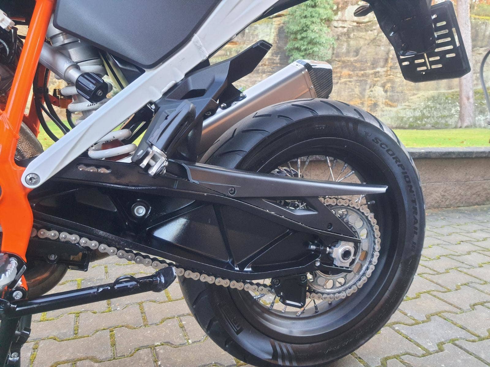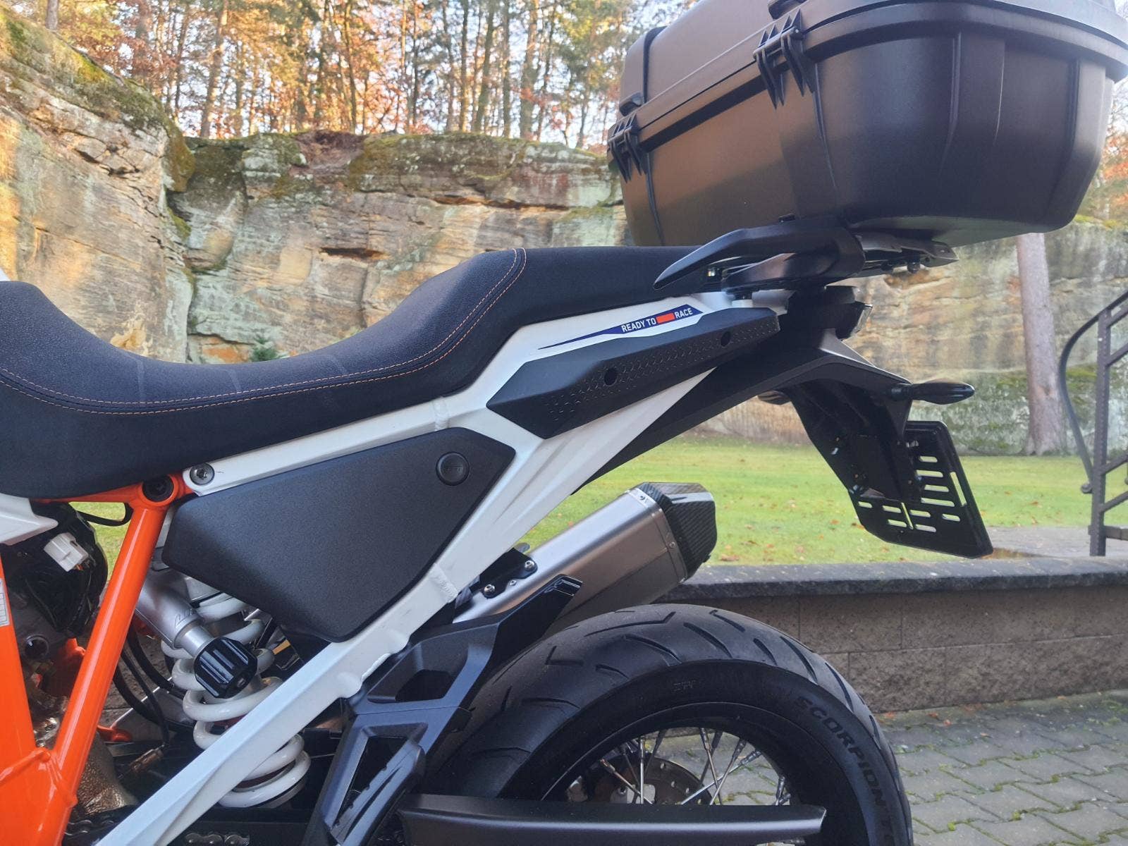 Motocykl v TOP stavu pěkné výbavěm nehavarovaný, dovezený ze zahraničí od autorizovaného pordejce. 1. manitel. 2 x klíč, elektronicky vedená servisní kniha, protokol o servisní prohlídce v KTM v 15 800 km - 08/2025, TECH PACK, pneu a řetězová sada OK. Výbava motocyklu: Padací rámy, hliníkový kryt motoru, padací rámy, kryty rukojetí, vyhřívané rukojeti, QUICKSHIFTER, noič na vrchní kufr od GIVI, + vrchní kufr KAPPA GARDA 52l, LADĚNÝ HOMOLOGOVANÝ VÝFUK MIVV, zásuvka 12V. Popis Zajímavé výhody ABS MTC Motor: Zdvihový objem1301 cm3 Max. výkon118 kW / 160 k Kroutící moment138 Nm Vrtání × zdvih (mm) 108 x 71 mm Motor4 dobý, vidlicový 2 válec, V 75° KarburaceElektronické vstřikování paliva SpojkaPASC, hydraulicky ovládaná ChlazeníKapalinové MazáníNucené olejové mazání se 3 olejovými čerpadly StartérElektrický Typ převodovky6 rychlostí, manuální EMSKeihin EMS s RBW a tempomat, dvojité zapalování CO2 emise134 g/km Spotřeba paliva5,7 l/100 km Podvozek: Provedení rámuChrom-molybdenový trubkový rám, obalovaný práškem Úhel hlavy řízení64,7° Odpružení předníWP XPLOR USD? 48 mm Odpružení zadníWP XPLOR PDS Zdvih pérování přední/zadní220/220 mm Světlá výška242 mm Výška sedla880 mm Velikost předního kolaPneu 90/90-R21 Velikost zadního kolaPneu 150/70-R18 Přední brzda2x čtyřpístkový brzdový třmen Brembo Zadní brzdaDvoupístkový pevný brzdový třmen Brembo Průměr brzdového kotouče přední /zadní320/267 mm Řetěz525 X-Ring Objem palivové nádrže (litry) 23 litrů Světlomety přední + zadníDuální LED (1 dálková/1 potkávací) Suchá hmotnost (kg) 221 kg Možnost splátkového prodeje, již při složení 10% akontace vyřízení úvěru do 30 minut!