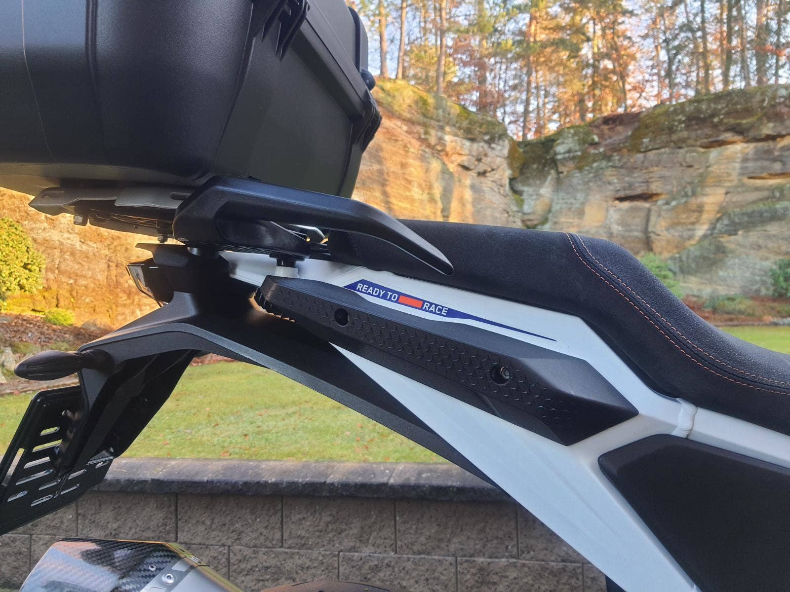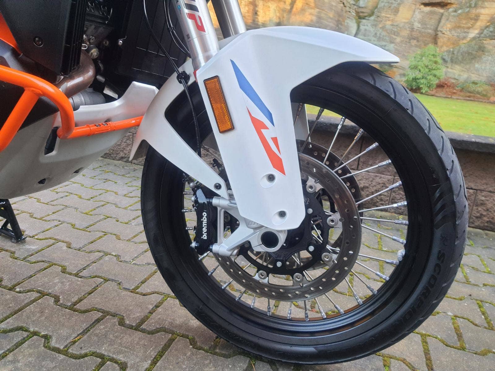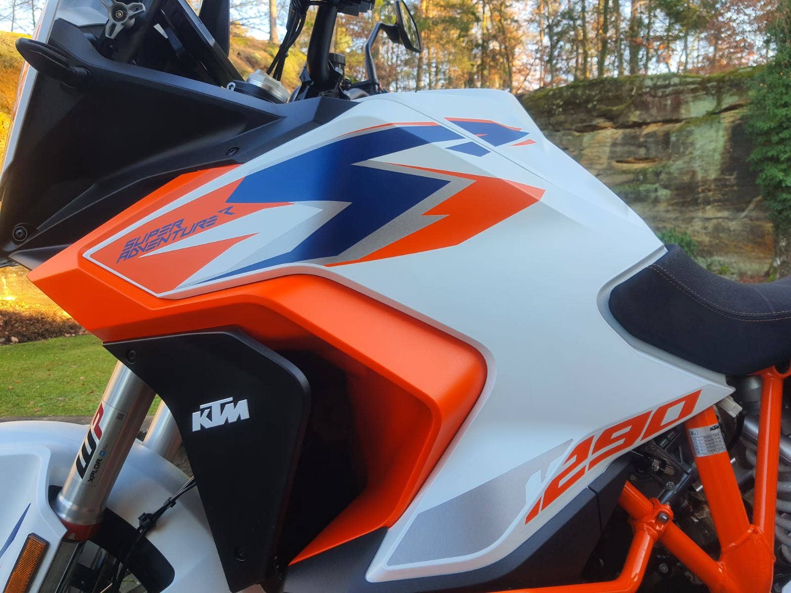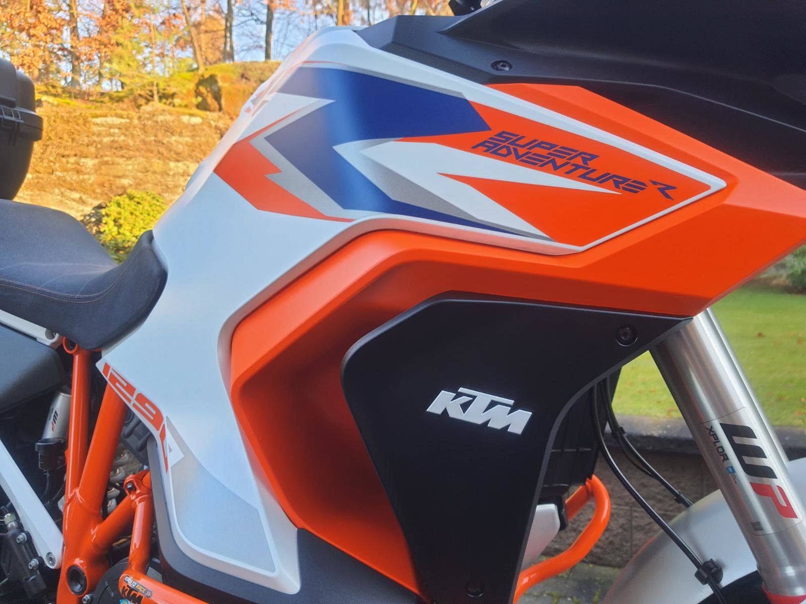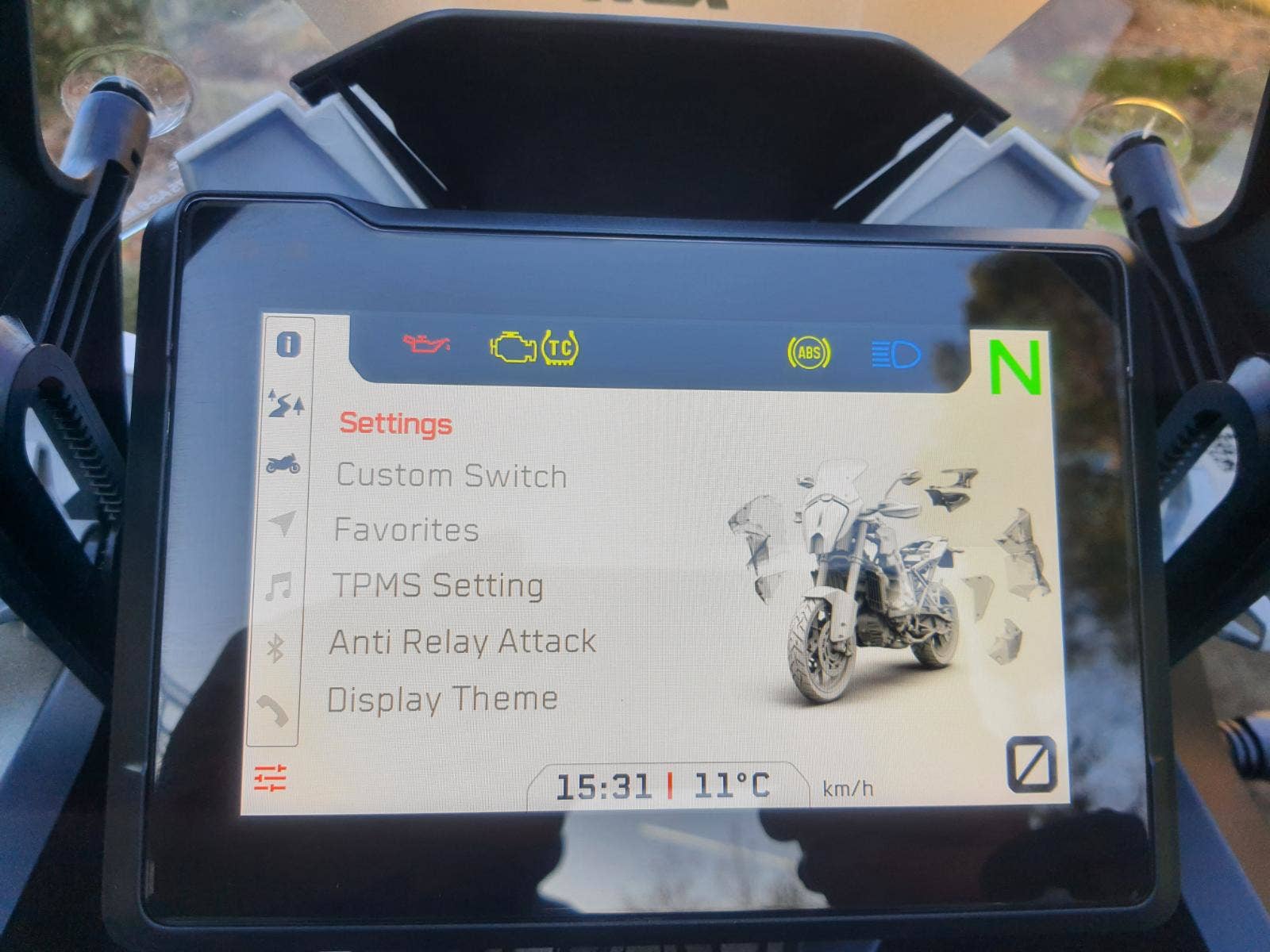 Motocykl v TOP stavu pěkné výbavěm nehavarovaný, dovezený ze zahraničí od autorizovaného pordejce. 1. manitel. 2 x klíč, elektronicky vedená servisní kniha, protokol o servisní prohlídce v KTM v 15 800 km - 08/2025, TECH PACK, pneu a řetězová sada OK. Výbava motocyklu: Padací rámy, hliníkový kryt motoru, padací rámy, kryty rukojetí, vyhřívané rukojeti, QUICKSHIFTER, noič na vrchní kufr od GIVI, + vrchní kufr KAPPA GARDA 52l, LADĚNÝ HOMOLOGOVANÝ VÝFUK MIVV, zásuvka 12V. Popis Zajímavé výhody ABS MTC Motor: Zdvihový objem1301 cm3 Max. výkon118 kW / 160 k Kroutící moment138 Nm Vrtání × zdvih (mm) 108 x 71 mm Motor4 dobý, vidlicový 2 válec, V 75° KarburaceElektronické vstřikování paliva SpojkaPASC, hydraulicky ovládaná ChlazeníKapalinové MazáníNucené olejové mazání se 3 olejovými čerpadly StartérElektrický Typ převodovky6 rychlostí, manuální EMSKeihin EMS s RBW a tempomat, dvojité zapalování CO2 emise134 g/km Spotřeba paliva5,7 l/100 km Podvozek: Provedení rámuChrom-molybdenový trubkový rám, obalovaný práškem Úhel hlavy řízení64,7° Odpružení předníWP XPLOR USD? 48 mm Odpružení zadníWP XPLOR PDS Zdvih pérování přední/zadní220/220 mm Světlá výška242 mm Výška sedla880 mm Velikost předního kolaPneu 90/90-R21 Velikost zadního kolaPneu 150/70-R18 Přední brzda2x čtyřpístkový brzdový třmen Brembo Zadní brzdaDvoupístkový pevný brzdový třmen Brembo Průměr brzdového kotouče přední /zadní320/267 mm Řetěz525 X-Ring Objem palivové nádrže (litry) 23 litrů Světlomety přední + zadníDuální LED (1 dálková/1 potkávací) Suchá hmotnost (kg) 221 kg Možnost splátkového prodeje, již při složení 10% akontace vyřízení úvěru do 30 minut!