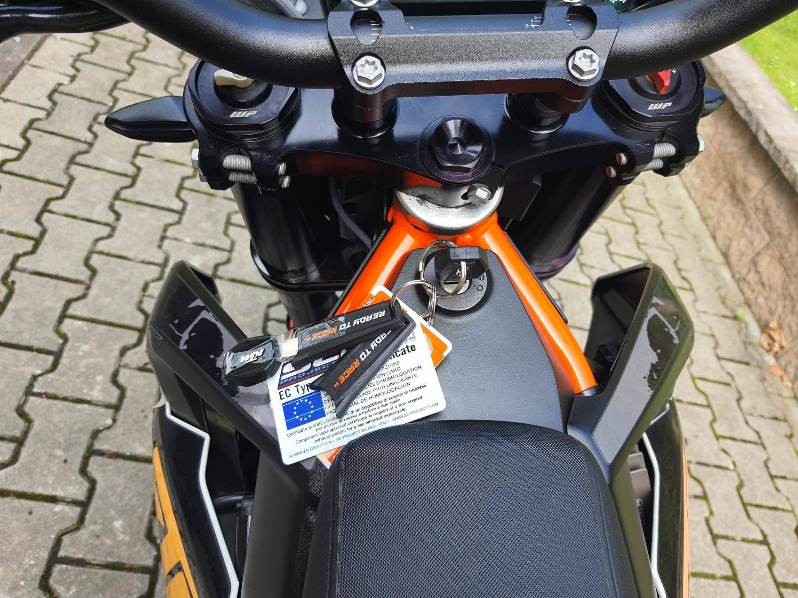 Motocykl v perfektním stavu, nehavarovaný, dovezený ze zahraničí. 1. majitel. Plná servisní historie motocyklu z KTM, poslední servis proveden v 30 000 KM! 2 x klíč, KEY CODE CARD, homologační karty k výfuku. Nová sada pneu + řetězová sada! Výbava motocyklu: ABS, TC, laděný homologovaný výfuk SC PROJECT, držák SPZ s diodovým osvětlením, diodová blikny, kryty rukojetí, doplňkový celopolep motocyklu. Možnost splátkového prodeje, již při složení 10% akontace vyřízení úvěru do 30 minut!