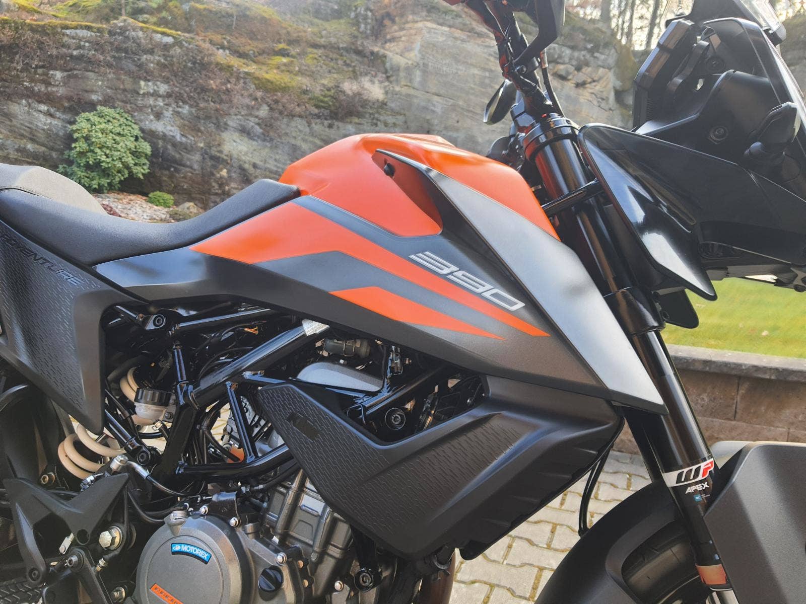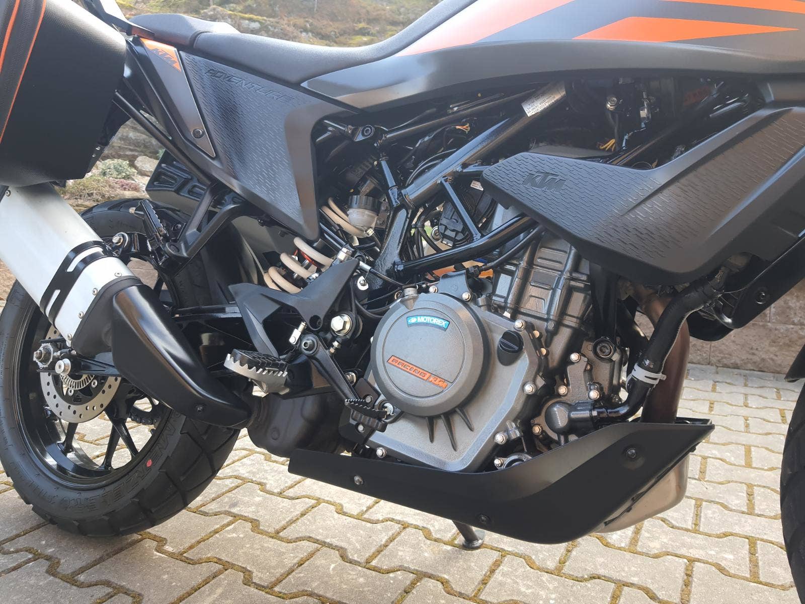 Motocykl v perfektním stavu a výbavě, nehavarovaný, dovezený ze zahraničí od autorizovaného prodejce. 2 x klíč, výpis servisní historie z KTM, KEX CODE CARD. Výbava motocyklu: ABS, BC, MTC QUICKSHIFTER +, VOLITELNÉ JÍZDNÍ REŽIMY, STREET, OFFROAD, BLUETOOTH, kryty rukojetí, rolny na zadní stojan, pancéř. hadičky, set bočních kufrů KTM POWER PARTS včetně nosičů, kryt motoru. Možnost splátkového prodeje, již při složení 10% akontace vyřízení úvěru do 30 minut!