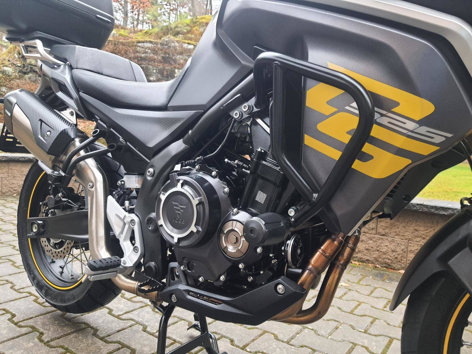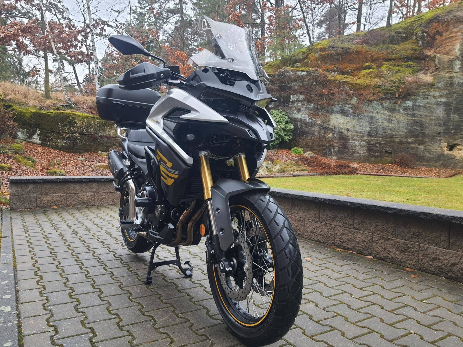 Stav nového stroje! Najeto pouze 5800 KM! Nehavarované, dovezené ze zahraničí od 1. majitele. 2 x klíč, moto v záruce do 9/2026. Výbava motocyklu: Padací rámy, + padací protektory, kyrty rukojetí, přídavná světla, nosič + kufr KAPPA. Výbava: - ABS a kontrola trakce TCS - Brzdy - 2× dvoupístkové Nissin - Kompletně nastavitelný podvozek Kayaba - vpředu plně nastavitelná Upside-Down vidlice - Vyplétaná bezdušová kola (19"/17") - Značkové pneumatiky Metzeler Tourance 110/80-R19 – 150/70-R17 - 2 Volitelné jízdní režimy ECO a SPORT - Přední integrovaná kamera se záznamem na SD kartu v HD rozlišení - Full LED světlomety - Kryty rukou - Rychlonastavitelné plexi - Padáky - Mlhovky - USB a 12V zásuvky - Hlavní a boční stojan - Bluetooth párování s mobilem a šipkovou navigací.. Možnost splátkového prodeje, již při složení 10% akontace vyřízení úvěru do 30 minut!